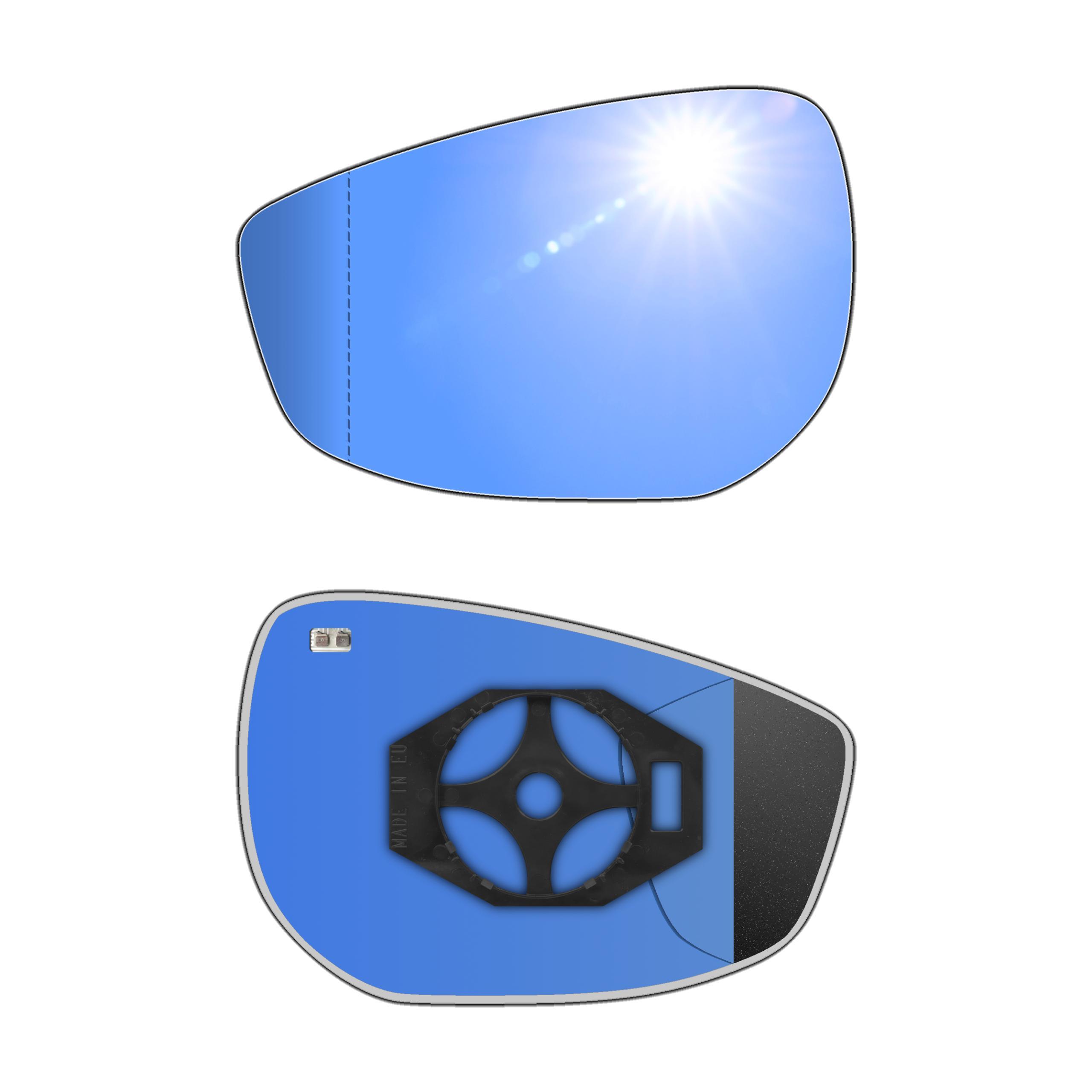 Antyrefleksyjny lewy ogrzewany wkład asferyczny lusterka - z plastikiem montażowym typu E0 (tzw. EURO) i niebieskim oddalającym szkłem z grzałką