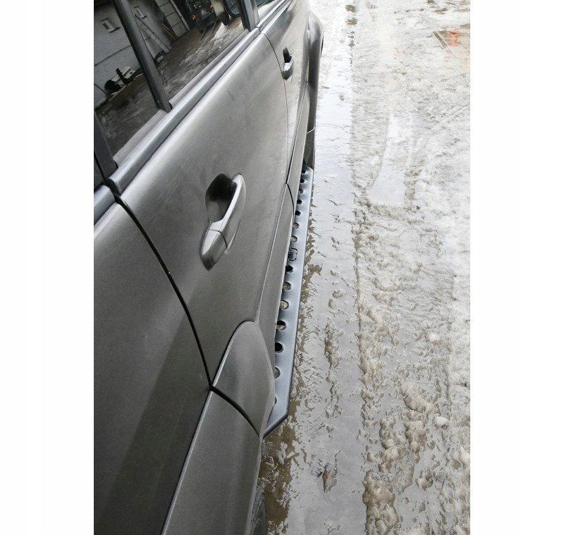 W komplecie 2 sztuki progów na obie strony samochodu wraz z uchwytami mocującymi oraz śrubami.