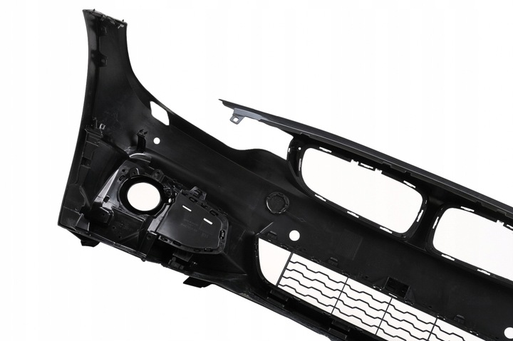 Zderzak przedni wyposażony w centralną dolną kratkę, kratki boczne, uchwyty/otwory systemu parkowania (PDC), osłony systemu spryskiwaczy reflektorów (SRA) i uchwyt tablicy rejestracyjnej