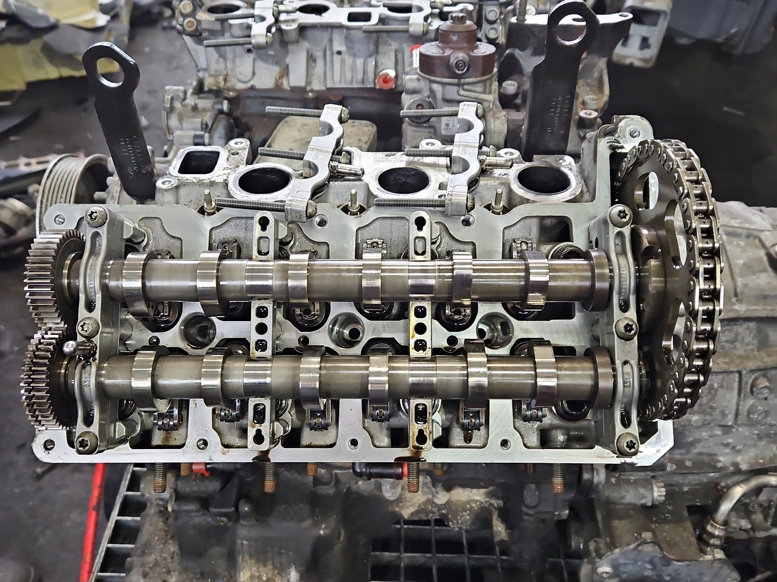 - Dodatkowe informacje: Silnik odpalony, zmierzone ciśnienie sprężania. Dodatkowe zdjęcia wnętrza cylindrów i wałków. Silnik bez osprzętu.