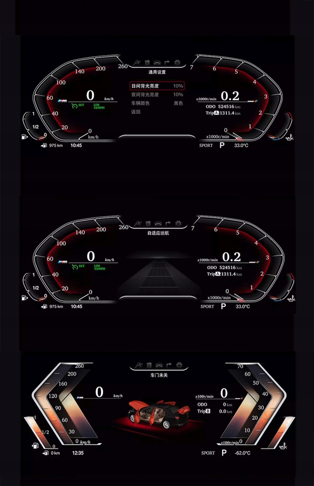 9. Kompatybilne oryginalne informacje o samochodzie / i kod błędu pokazują: ACC adaptacyjny rejs, utrzymanie pasa ruchu, znaki ograniczenia prędkości, ciśnienie w oponach, zużycie paliwa, bieg, prędkość, błąd silnika itp.
