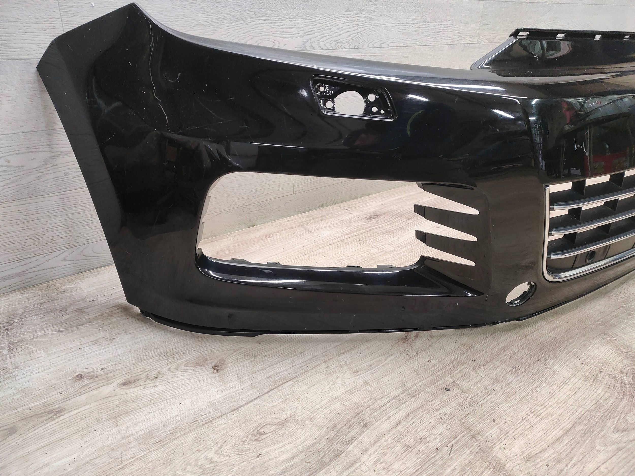 Zderzak przedni Volkswagen Touareg 7P6 R-lineWersja na Spryskiwacze Zderzak był klejony w miejscach widocznych na zdjęciach, oraz ma brak mocowania w dolnej części, kratka uszkodzona jak na zdjęciu. Zdjęcia przedstawiają faktyczny stan przedmiotu. Przy zakupie proszę sugerować się numerem części. do samochodu Volkswagen Touareg II Inne