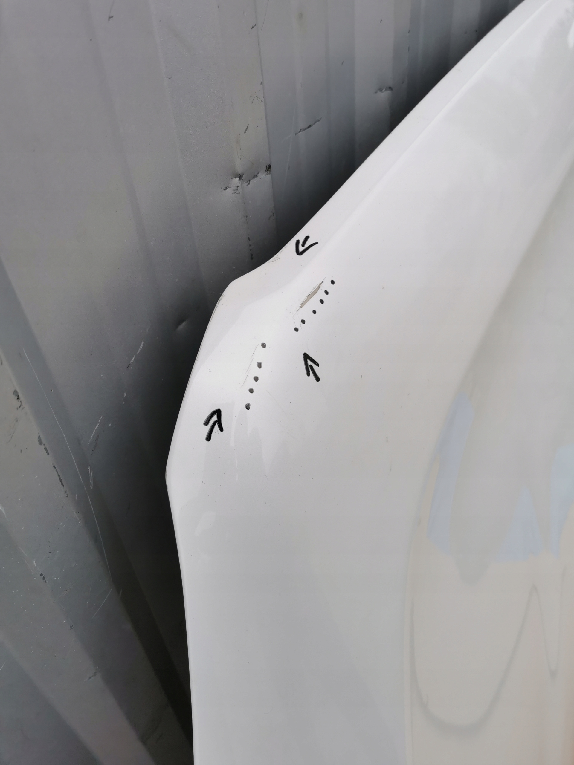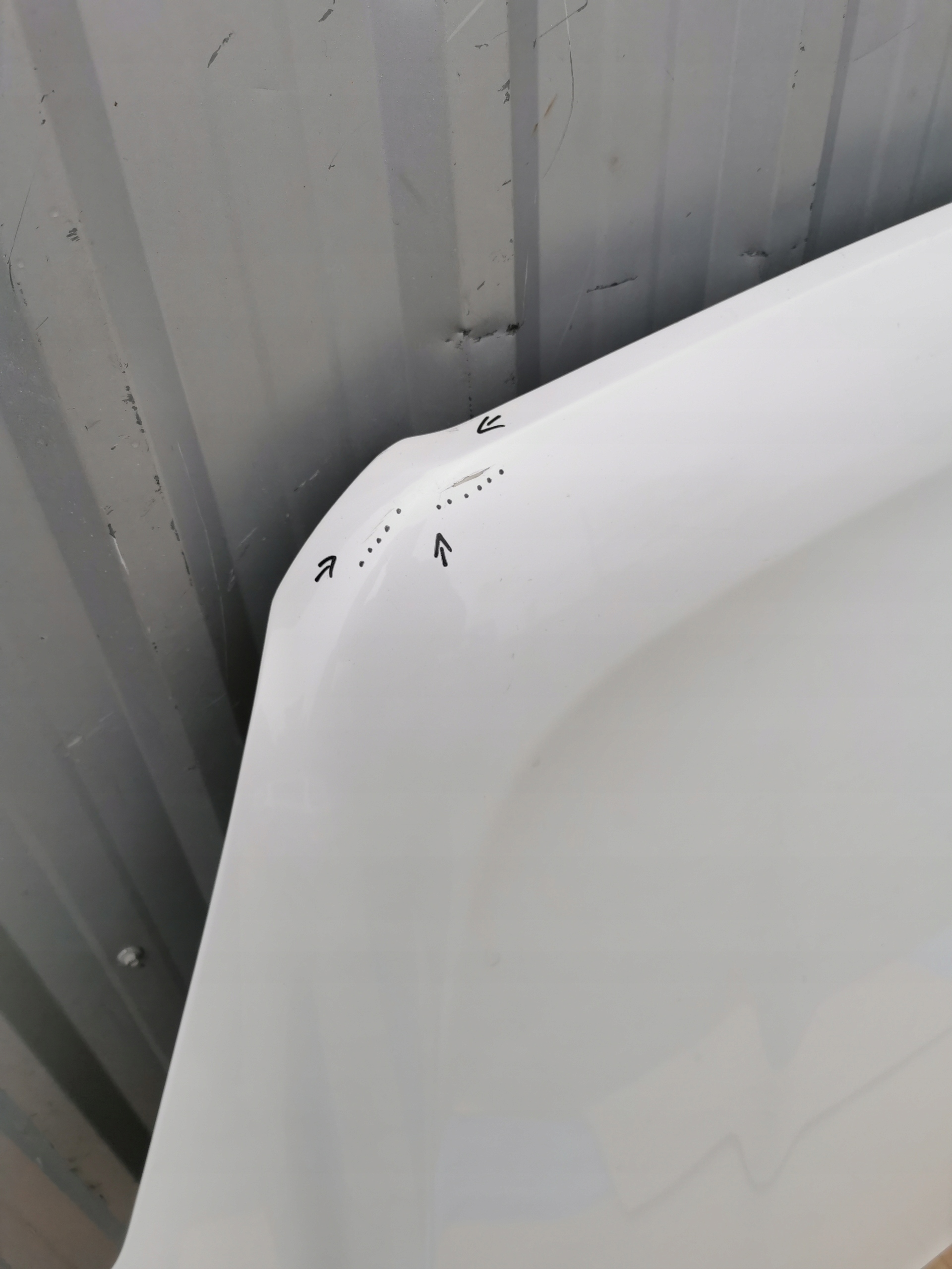 - W ZAZNACZONYM MIEJSCU BO BARDZO DELIKATNEJ NAPRAWIE / NAROŻNIK JEST PROSTY BEZ WGNIECEŃ