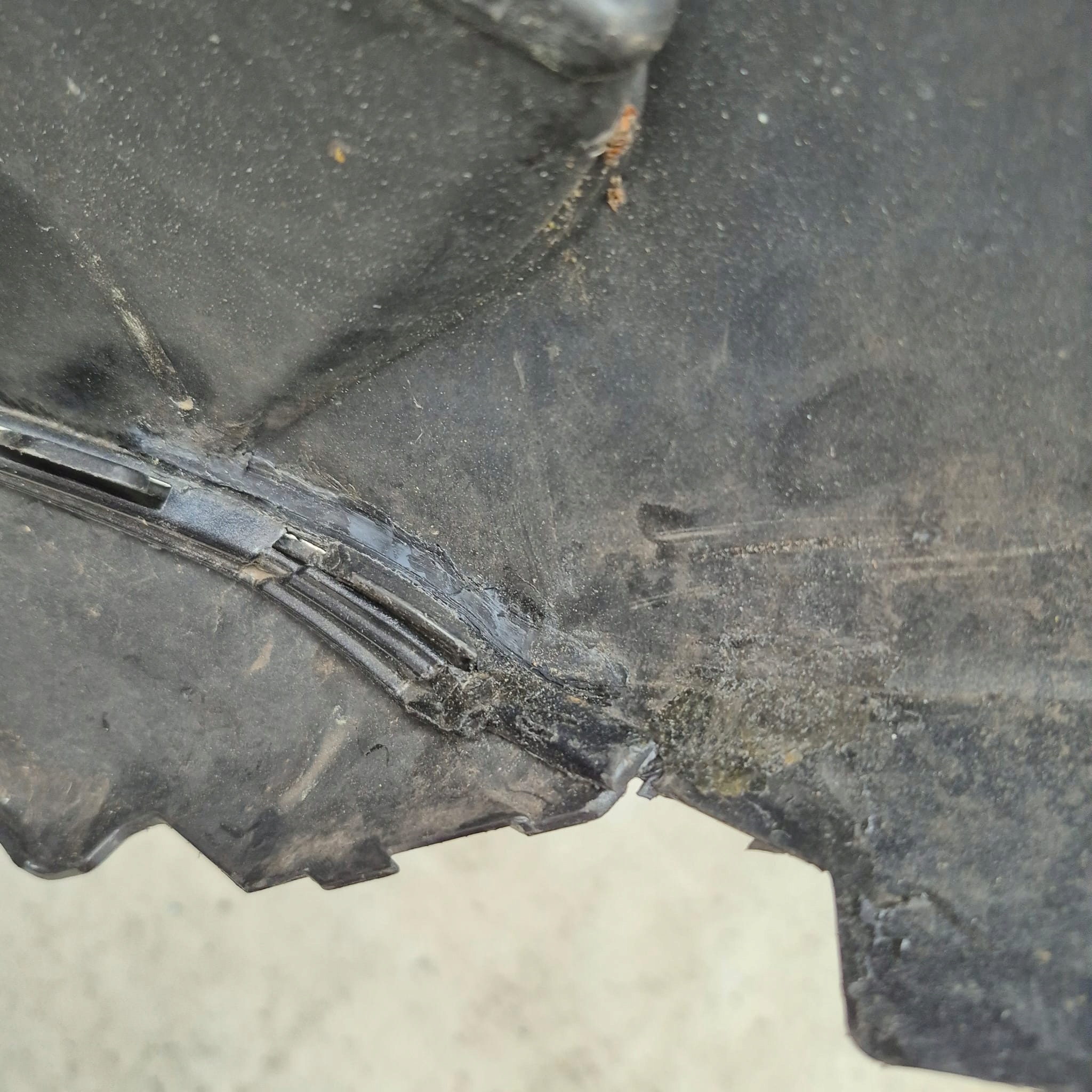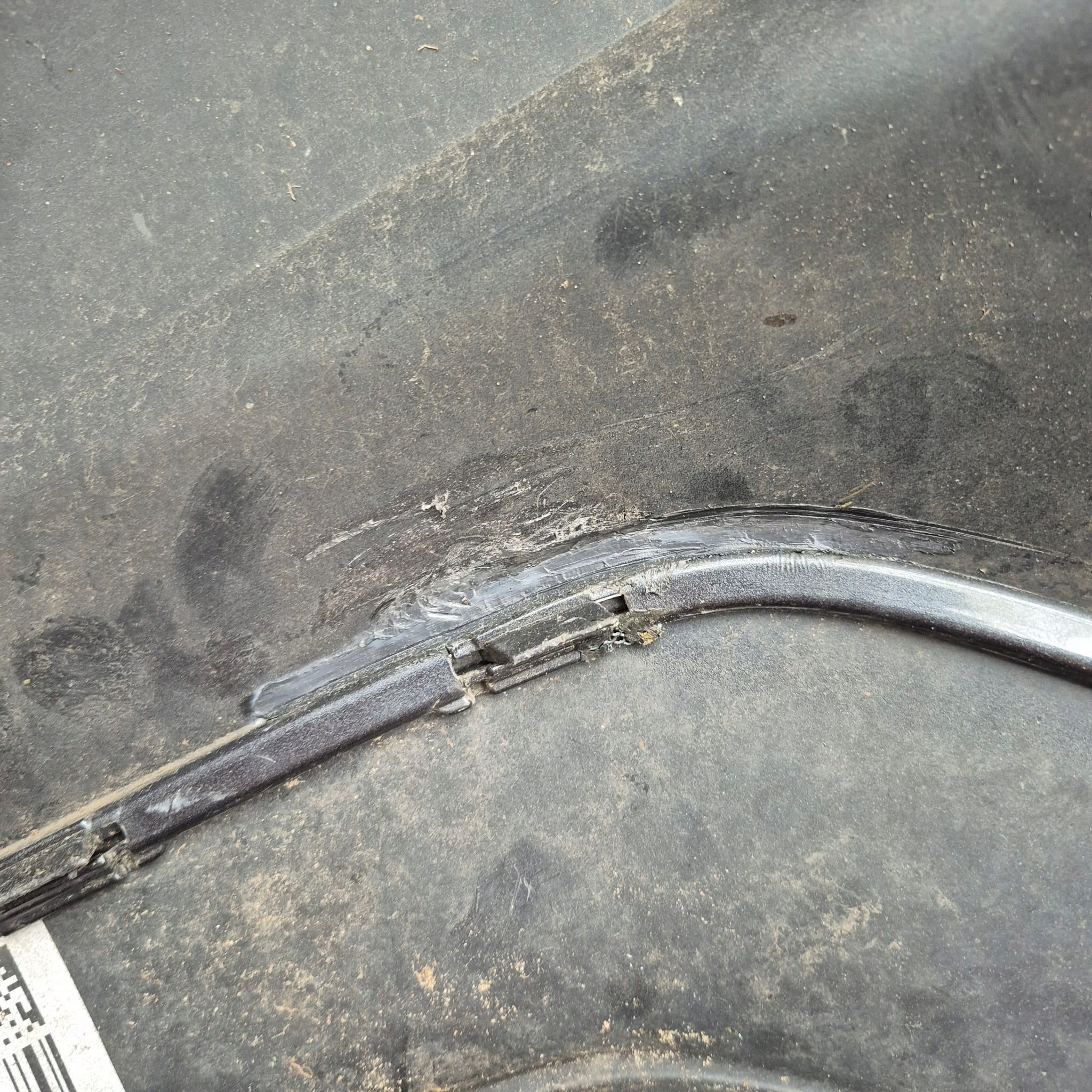 ZDERZAK KLEJONY Z LEWEJ STRONY NA DOLĘ PRZY SPOJLERZE W MIEJSCU PRZYBLIŻONYM NA ZDJĘCIACH.