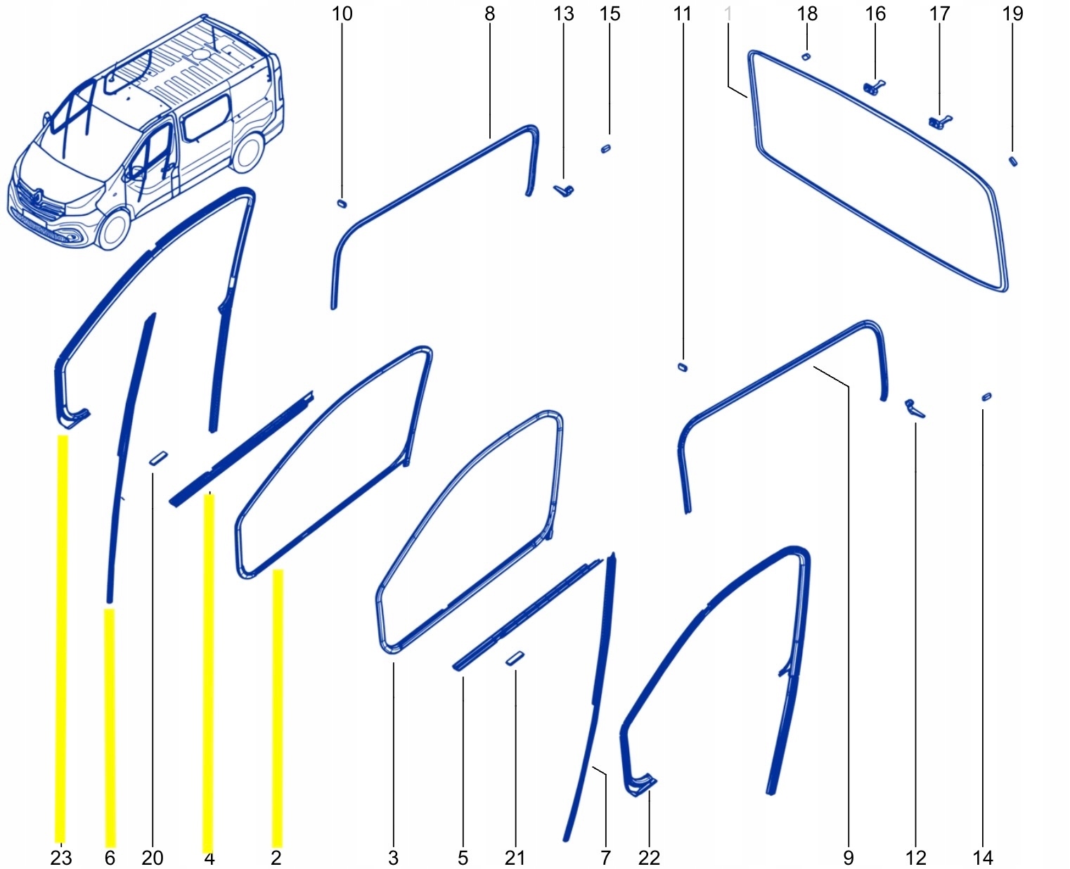 Uszczelki szyby listwa drzwi prawy przód Renault Trafic III Vivaro B Talento