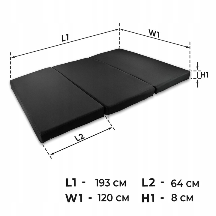 - Trzyczęściowa konstrukcja materaca pozwala na jego szybkie złożenie i wygodne przechowywanie. Po złożeniu zajmuje niewiele miejsca, a jego kompaktowe wymiary pozwalają na maksymalne wykorzystanie przestrzeni pojazdu.