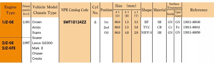 Nr OE: 13011-46040, 13011-46041, 13011-46050