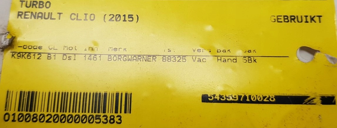 Турбонагнітач 7701478939 54359710028 16446rh82728353 1.5dci renault 88325