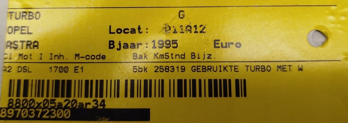 Турбонагнітач opel astra 1,7 8970372300 vi72 9209