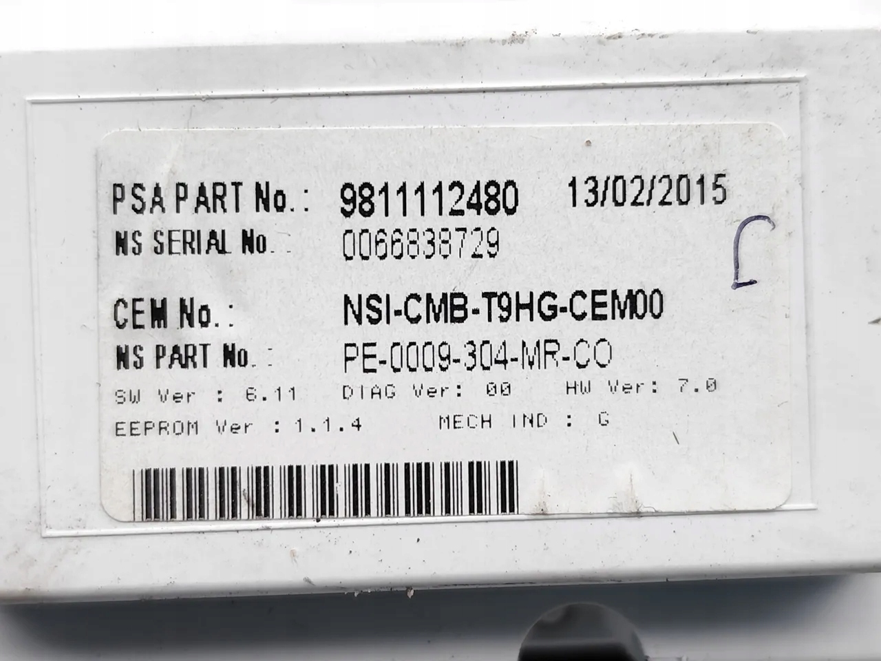 | Каталожний номер запчастини: | 9811112480 |