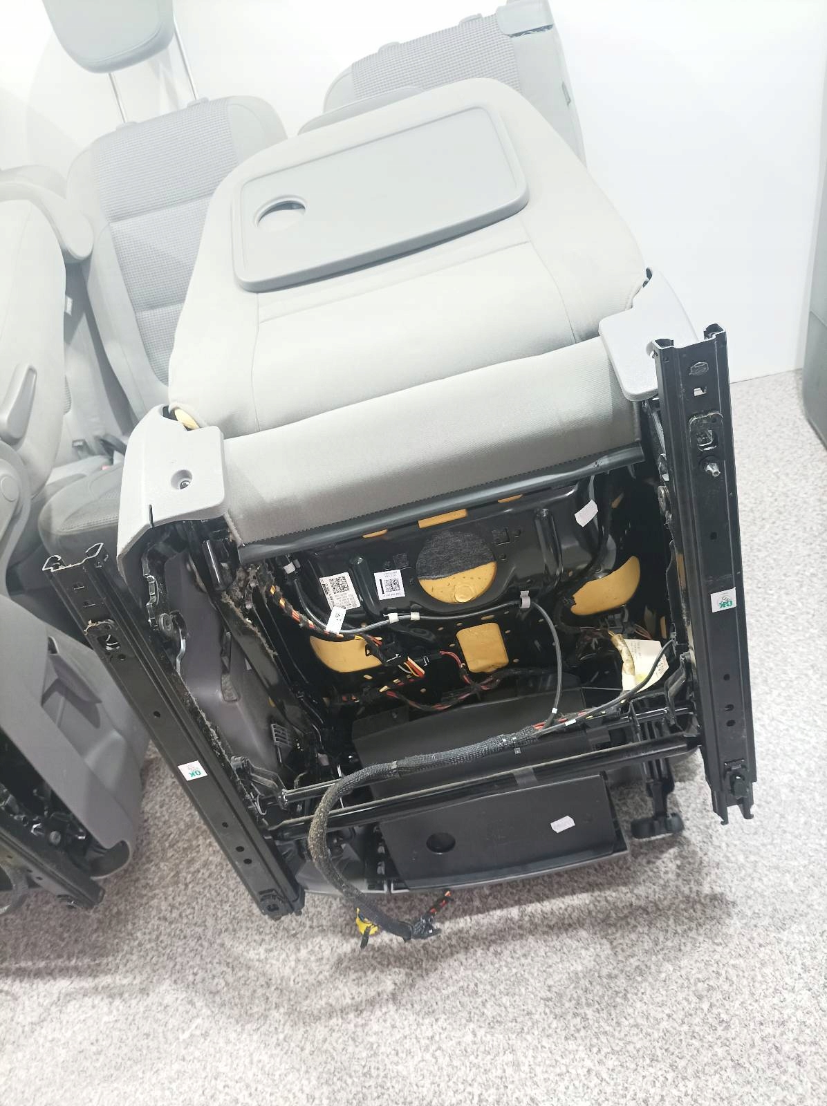 Cena za komplet foteli przednich podgrzewanych z fotelami II rzędu oraz boczkami. Fotele są do doczyszczenia.