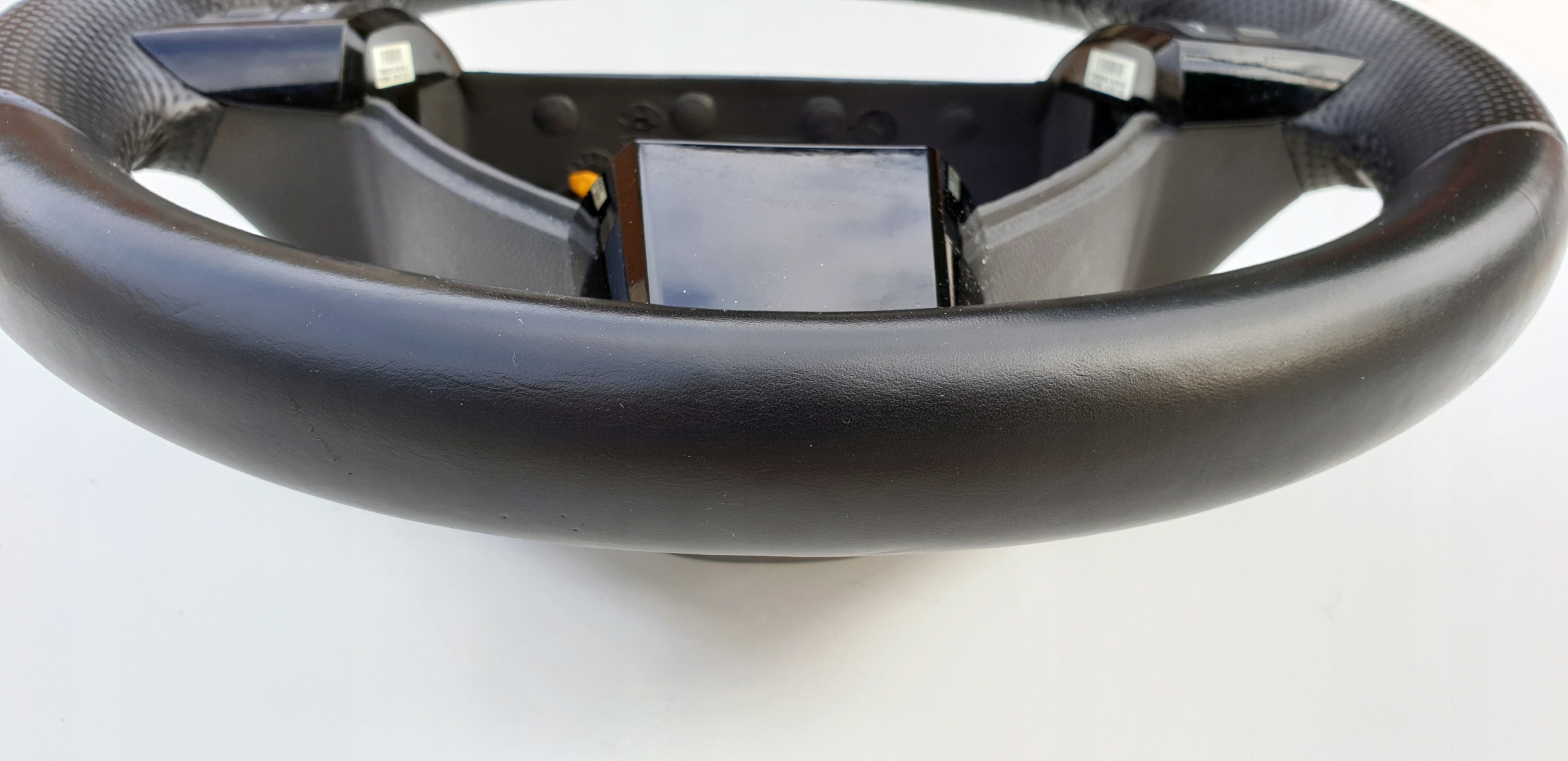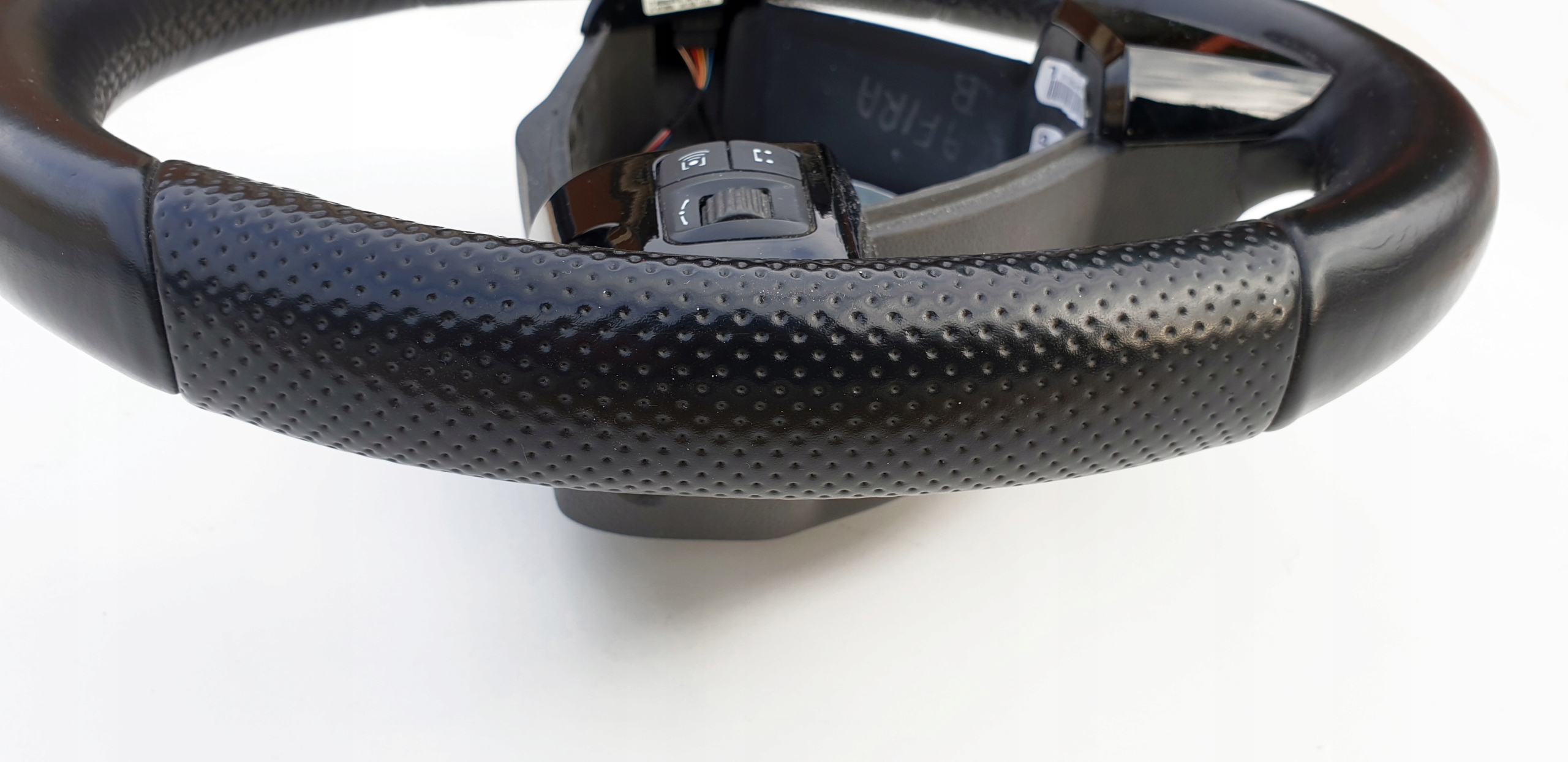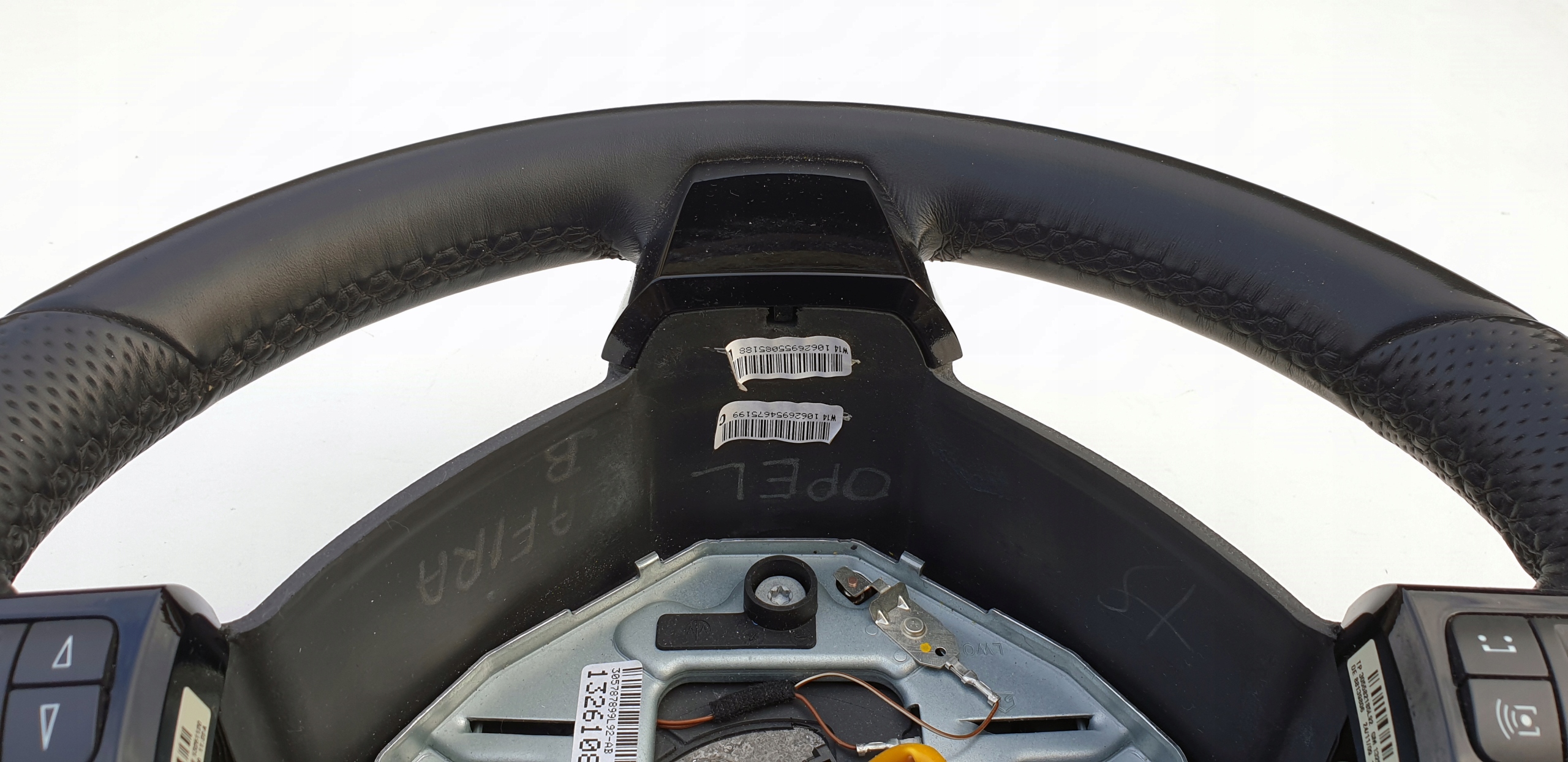 Kierownica bardzo ładna. Posiada jakieś drobne odkształcenia (np. od paznokcia, obrączki, spodni itp.), niemniej są to bardzo drobne odkształcenia. Sama skóra nie jest powycierana, przetarta, nie jest też spękana co niestety dzisiaj jest normą tych kierownic - słońce i dotyk rąk swoje robi. Fajna delikatna (mięsista) w dotyku. Szwy wszystkie całe. Multifunkcja w pięknym czarnym pomysłu, tzw. piano black. Rolki sterowania jak widać ładne choć ta po lewo ma ślady użytkowania, nie jest idealna. Kierownica jest tak naprawdę moim "leżakiem garażowym" - planowałem zakup Zafiry B 5 lat temu, ale niestety nie udało się zrealizować celu. Myślę, że warta polecenia. Koszt nowej kierownicy to wydatek przekraczający 3500zł (830 euro).