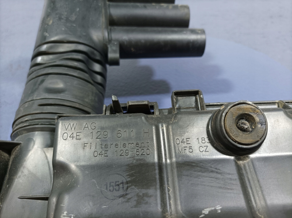 Opis: z rurą dolotu 04E129651C, uszkodzenia widoczne na zdjęciach, - jakość B && SKODA FABIA III NJ 1.2 TSI 90 KM OBUDOWA FILTRA POWIETRZA 04E129611H