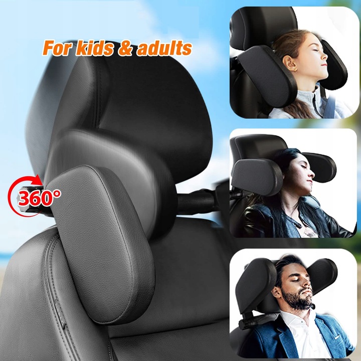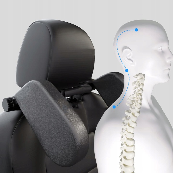 Ergonomiczne podparcie głowy i szyi zamontowane na zagłówku samochodowym poprawia komfort i bezpieczeństwo podczas snu.