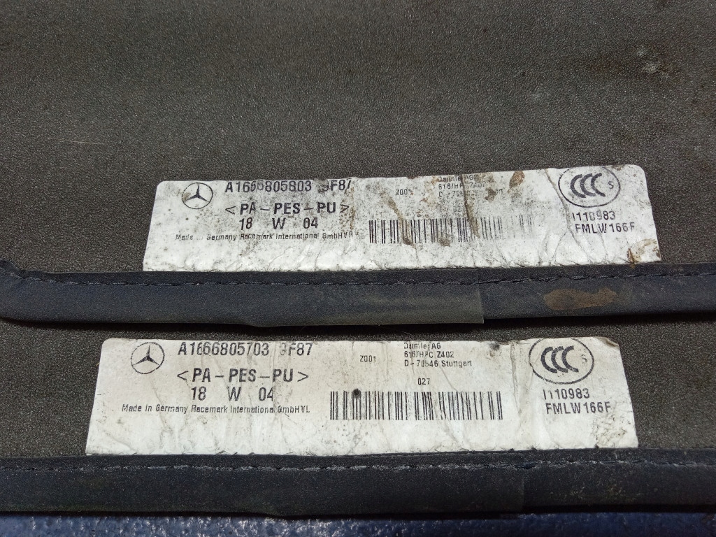 Opis: 4 sztuki: A1666805703, A1666805803, A1666842300, A1666842400, brak zaślepek, ślady użytkowania widoczne na zdjęciach -jakość B && MERCEDES GLE W292 DYWANIKI WELUROWE KOMPLET EU A1666805703