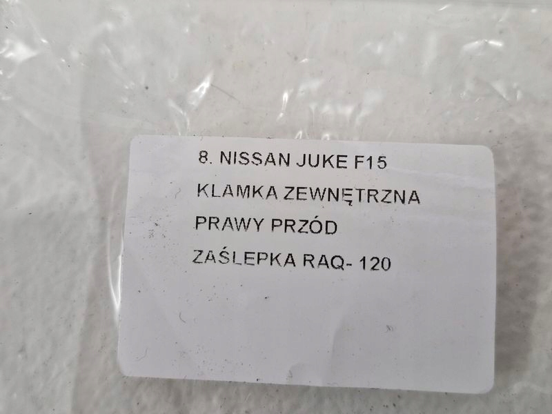 NISSAN JUKE F15 KLAMKA ZEWNĘTRZNA PRAWY PRZÓD PRAWA PRZEDNIA ZAŚLEPKA RAQ