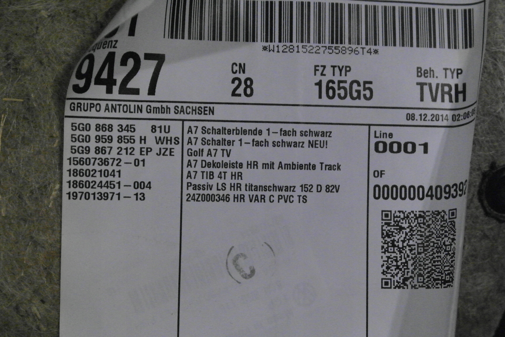| Якість запчастини відповідно з gvo: | o - оригінал з логотип виробник транспортного засобу оригінальний номер |