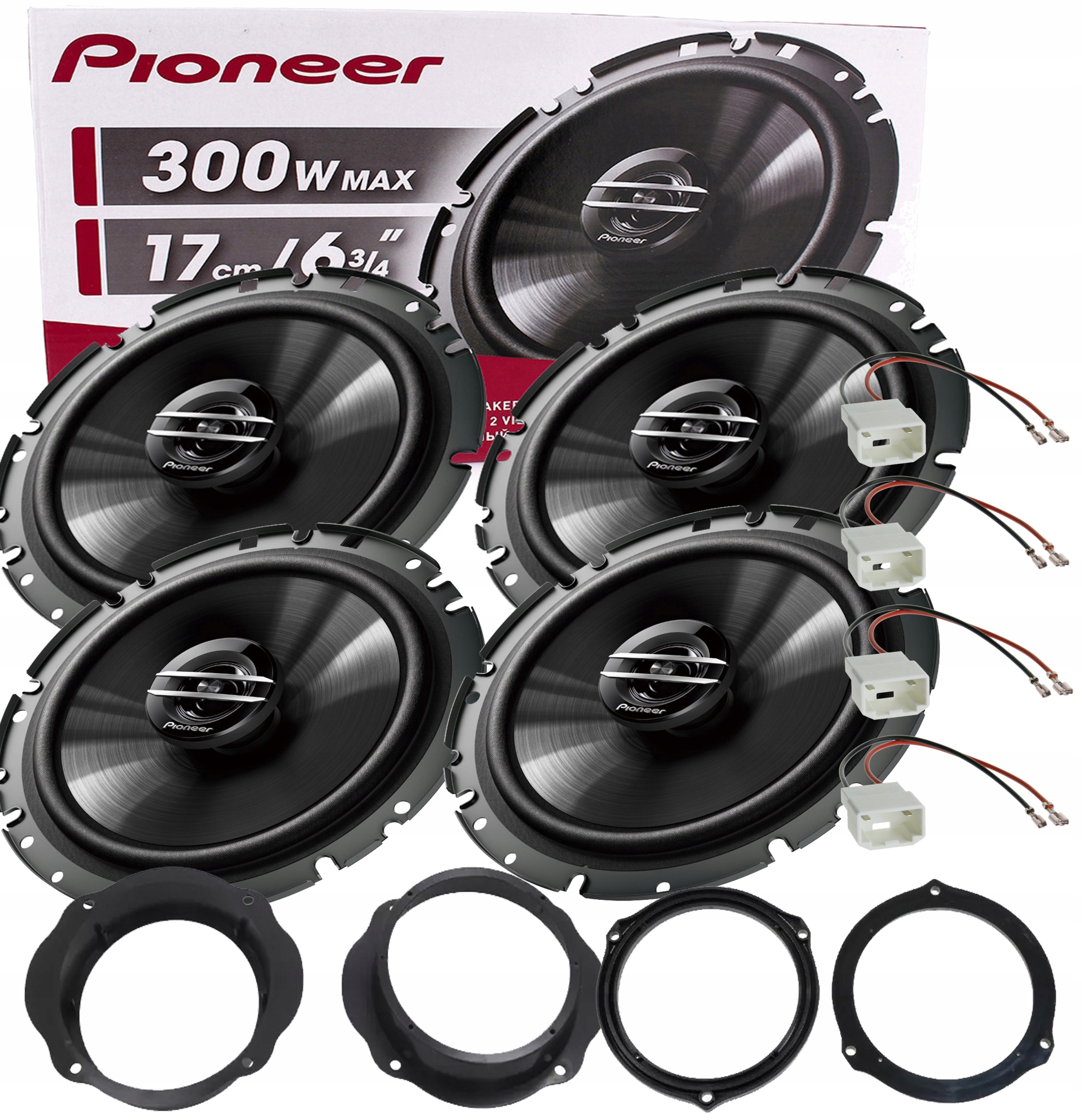 NOWE GŁOŚNIKI ZNANEJ FIRMY PIONEER W KOMPLECIE Z DYSTANSAMI I REDUKCJAMI DO PODŁĄCZENIA Z FABRYCZNĄ INSTALACJĄ SAMOCHODU