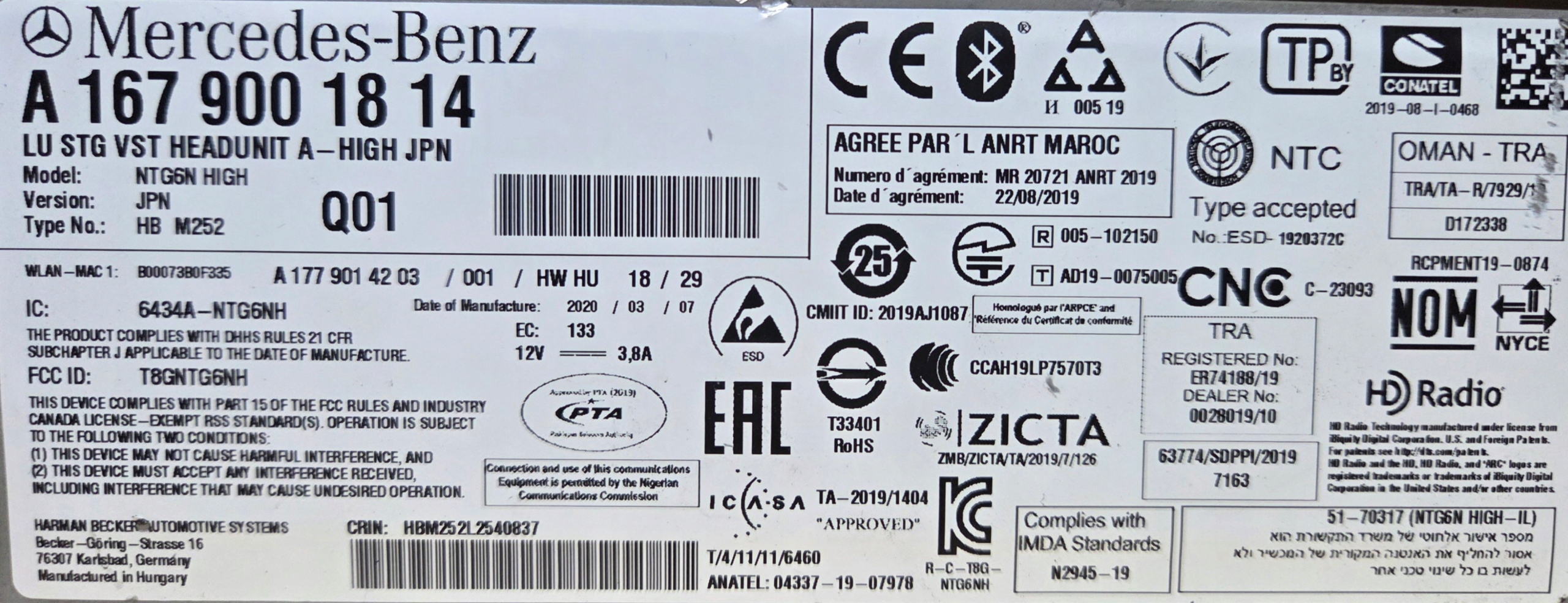 A1679001814 NAVI NAWIGACJA MERCEDES NTG6 HU6 HIGH JAPAN