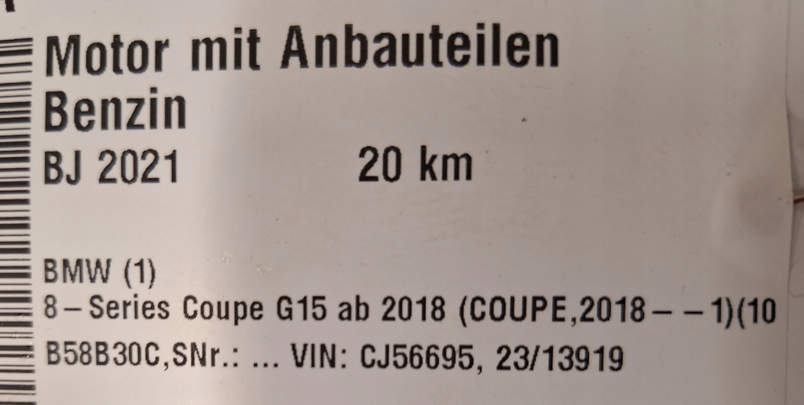 PRZEDMIOTEM SPRZEDAŻY JEST NOWY SILNIK BENZYNOWY MODEL B58B30C WERSJA BEZ MILD HYBRID