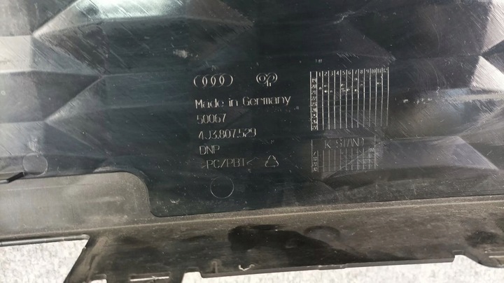 ATRAPA / GRILL - "ŚRODEK ZDERZAKA" . AUDI E-TRON GT MODEL: 4J3 ROK: OD 2020 -> . PRZEDMIOT ORYGINALNY, UŻYWANY W DOBRYM STANIE . AUTENTYCZNY STAN PRZEDSTAWIONY NA ZDJĘCIACH . MOŻLIWY ODBIÓR NA GIEŁDZIE - SOBOTA LUBIN - NIEDZIELA GLIWICE .