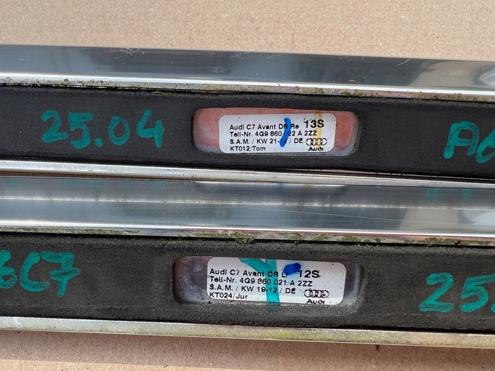 | Каталожний номер запчастини: | AUDI A6 C7 KOMBI LISTWY LISTWA DACHOWA RELINGI CHROM LEWA PRAWA 4G9860021A 4G9860022A 25.04 |