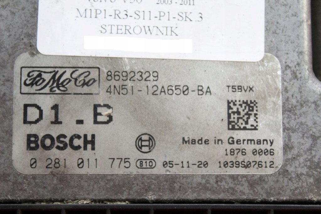 Dodatkowe informacje: SILNIKA, BOSCH 0281011775, 1.6 D KOMBI -jakość A && STEROWNIK SILNIKA 4N51-12A650-BA 0281011775 VOLVO V50 1.6 D 110 KM 03-11