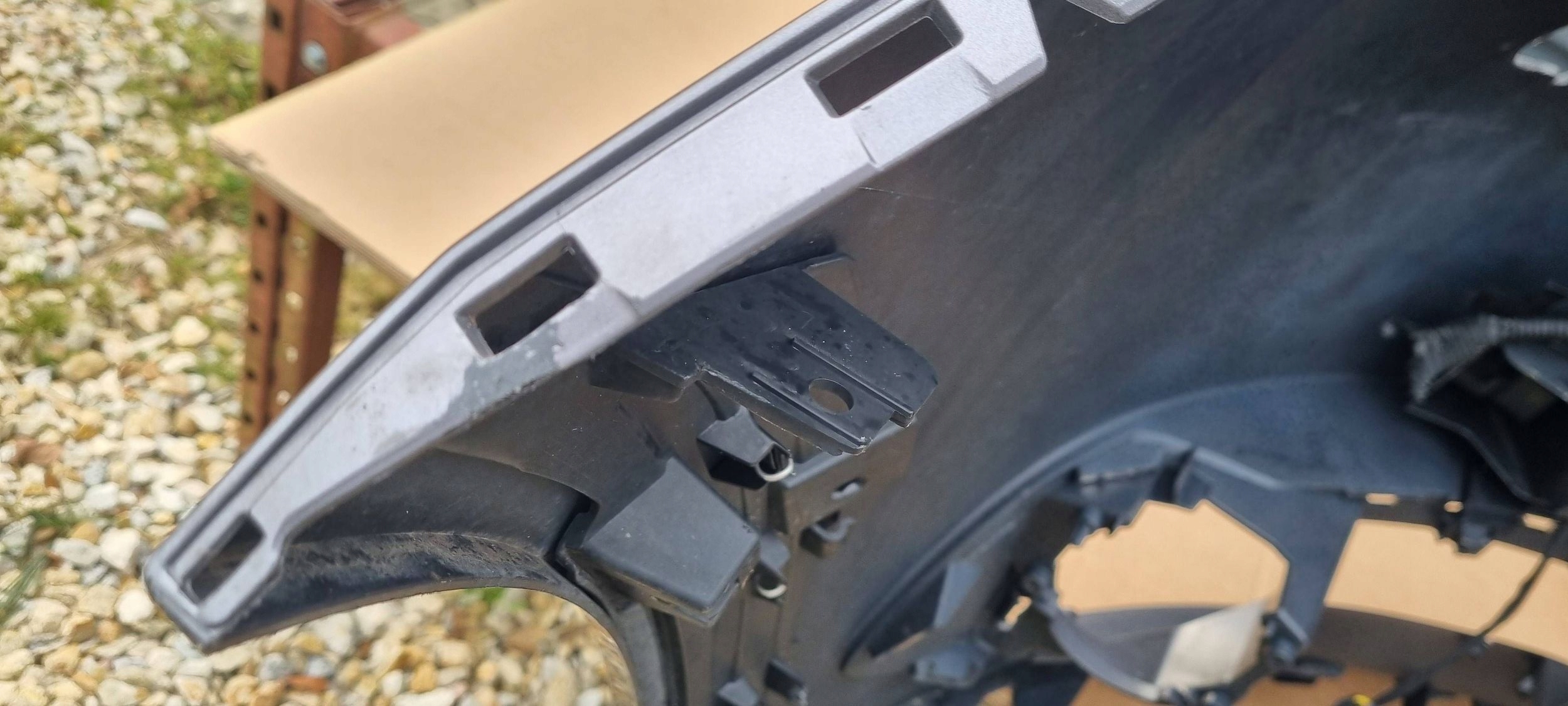 Przedmiotem sprzedaży jest: Zderzak przedni:..... RENAULT SCENIC III LIFT, Model po liftingu, Rocznik: 2013-..... Zderzak jest używany..... Oryginalny..... Stan dobry..... Pochodzi z demontażu..... Zderzak był pęknięty, został pospawany, miał naprawiane boczne zaczepy, widać to na zdjęciach..... Zderzak jest dokładnie taki jak na zdjęciach..... Nie znak kodu lakieru, nie sprzedaję w kolor, zderzak używany, do polakierowania, proszę o tym pamiętać..... Numer magazynowy zderzaka: C237.