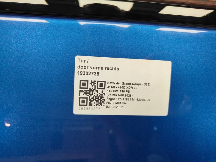 BMW 4 i4 G26 DRZWI PRZEDNIE PRAWE PRAWY PRZÓD KOLOR C31 POTIMAO BLAU