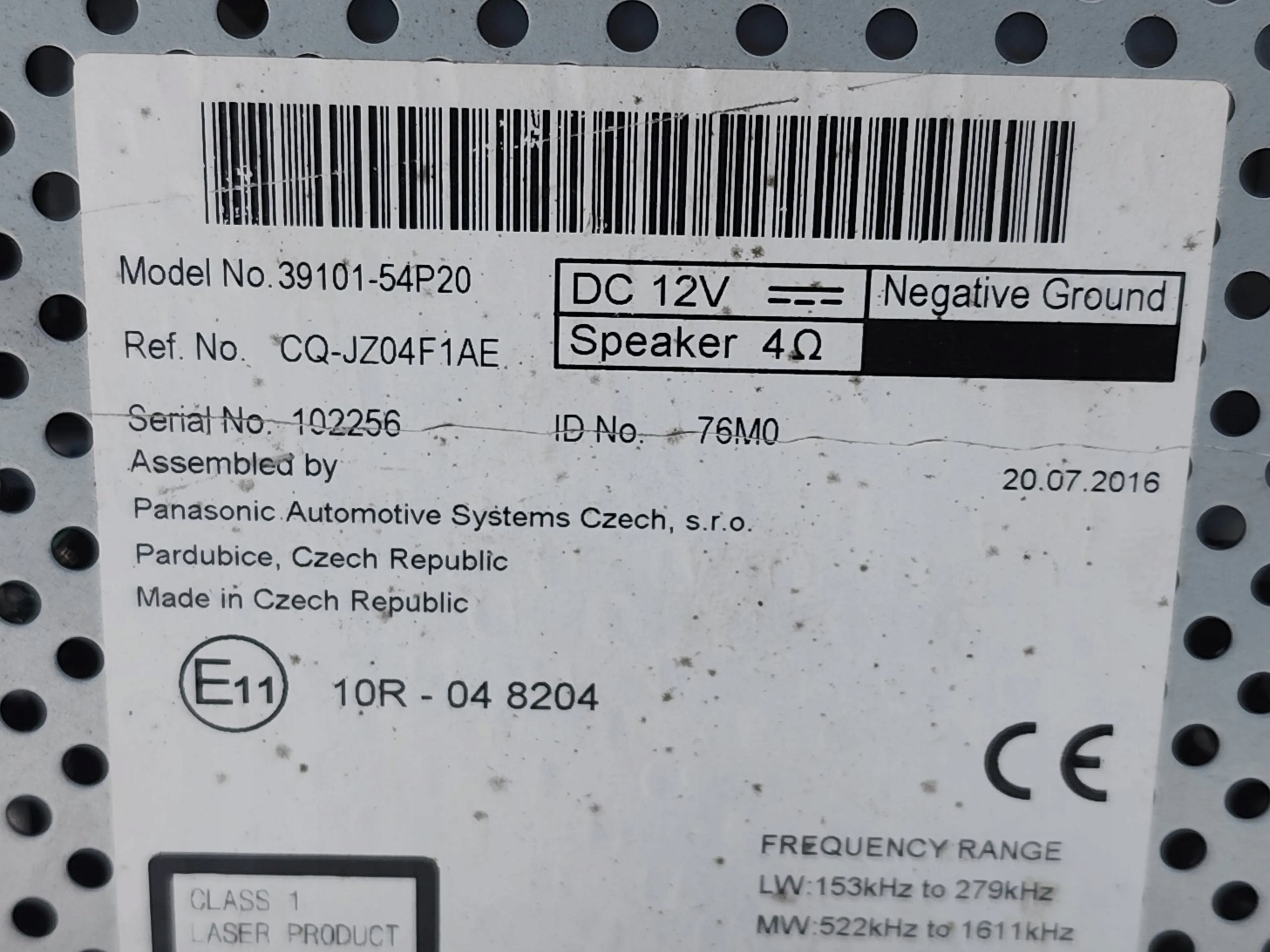 Suzuki Vitara Radio CD Player. 2017 SUV 4/5dr 39101-54P20 CQ-JZ04F1AE (15-24) 88kW (120 HP) Benzyna 1.6