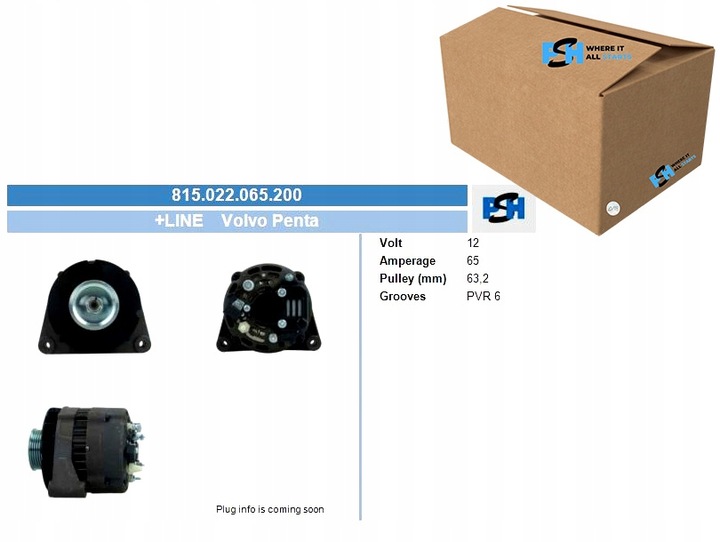 ALTERNATOR VOLVO PENTA 65A ALTERNATOR BV PSH