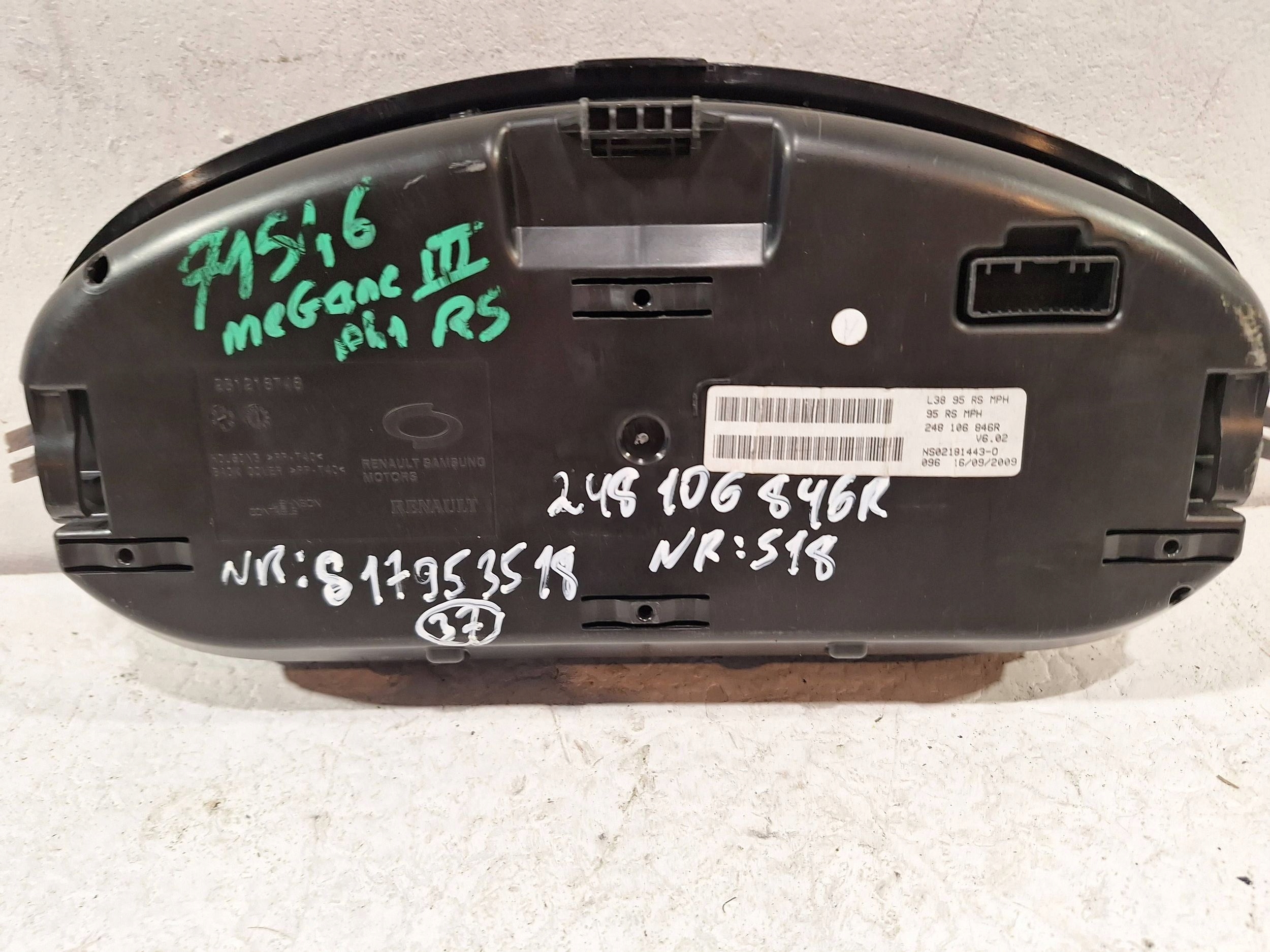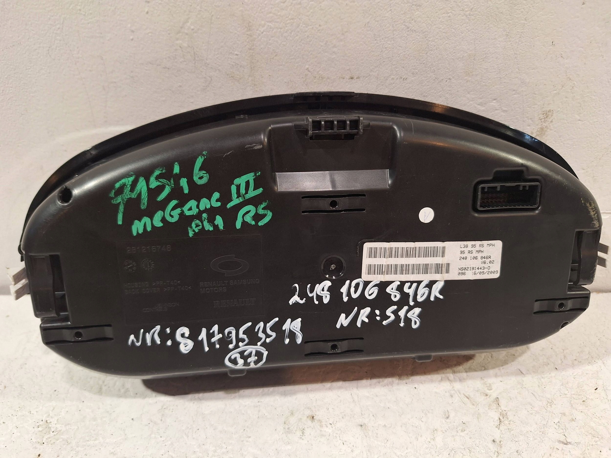 LICZNIK 248106846R RENAULT MEGANE III RS 2.0 TCE 09-Stan Dobry , Pochodzi z demontażu ,Wersja angielska , Nr magazynowy S17953518