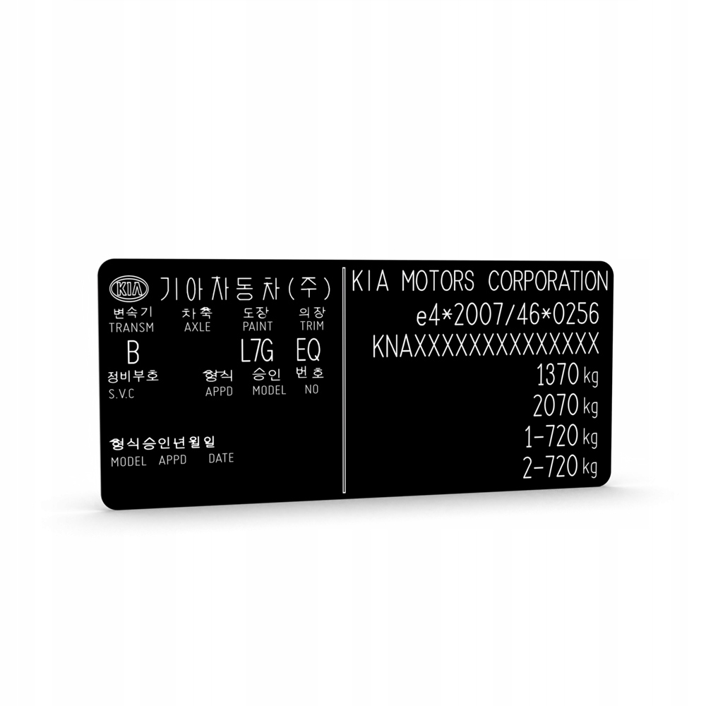 Kia табличка наклейка номінальна запасна vin v.2