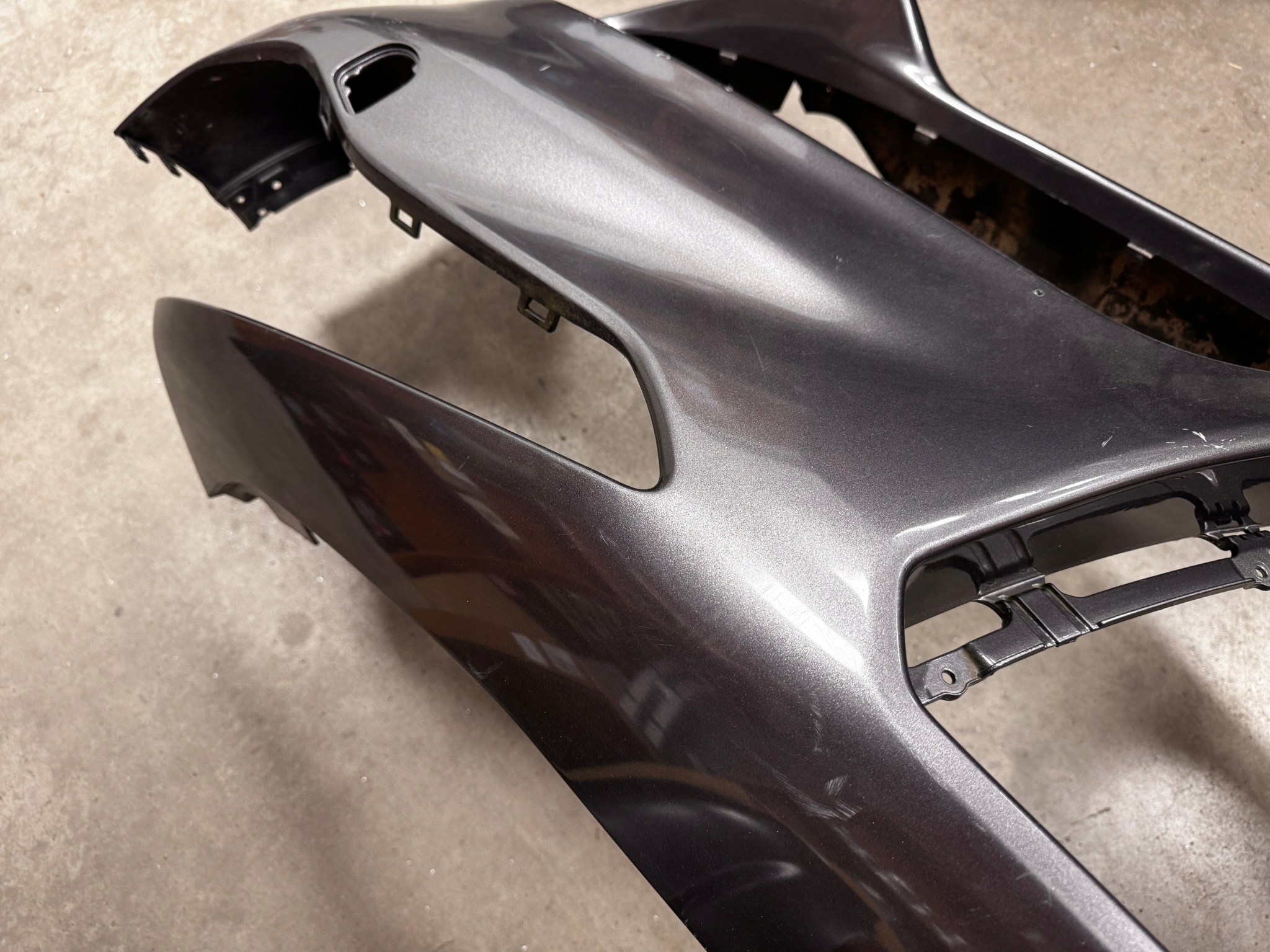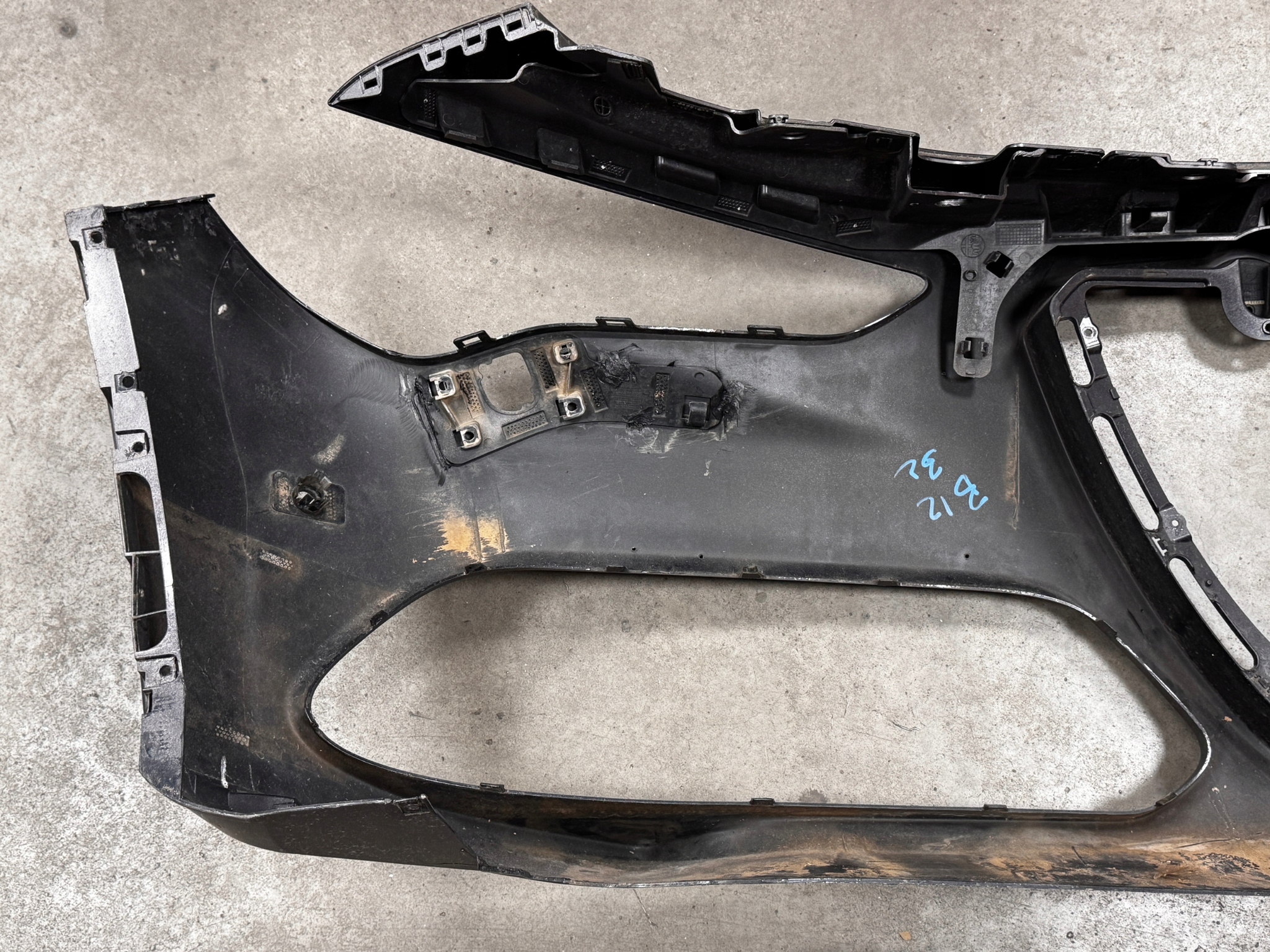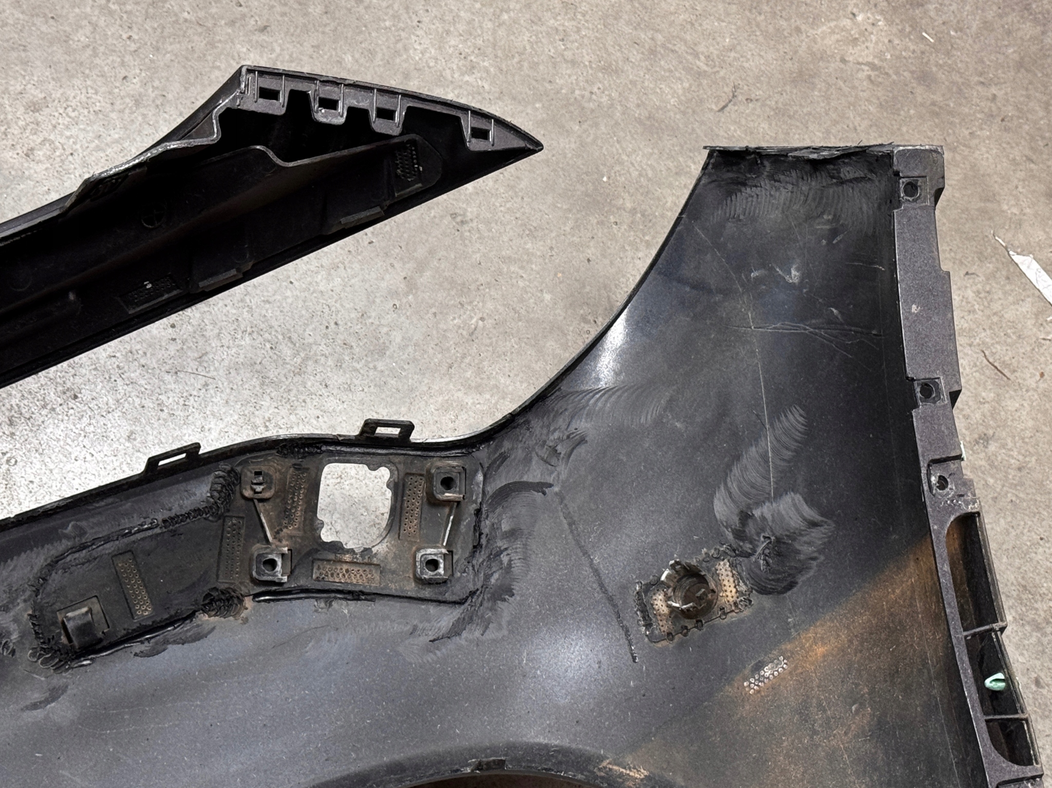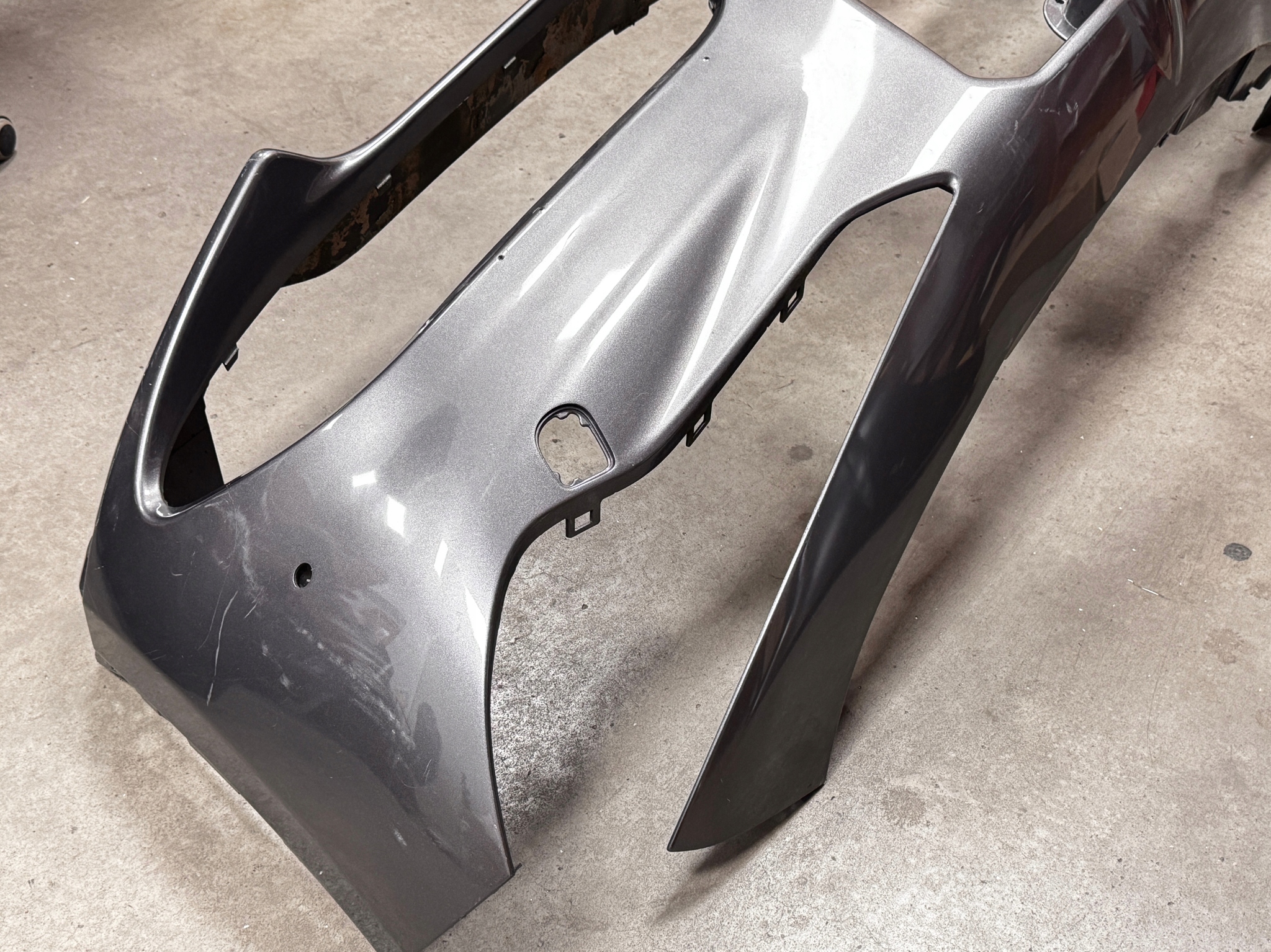 Stan: używany z defektami, które są spowodowane magazynowaniem produktu oraz eksploatacją pojazdu. Zderzak posiada defekty widoczne na zdjęciach. Zderzak posiada spawane miejsca. Po jednej stronie dorobiona listwa z mocowaniami. Lekkie odkształcenia pomiędzy górną częścią przy reflektorach. Zderzak z otworami pod spryskiwacze reflektorów.