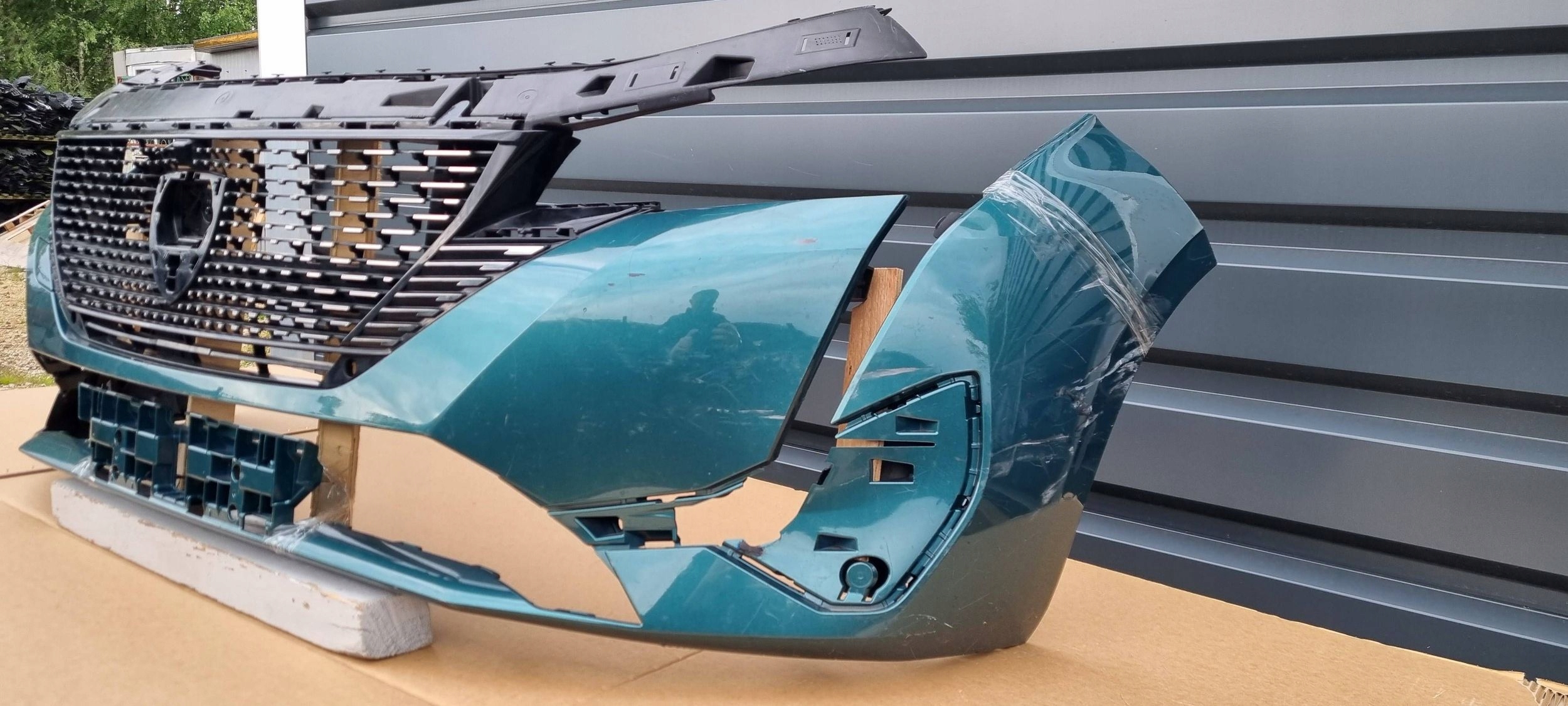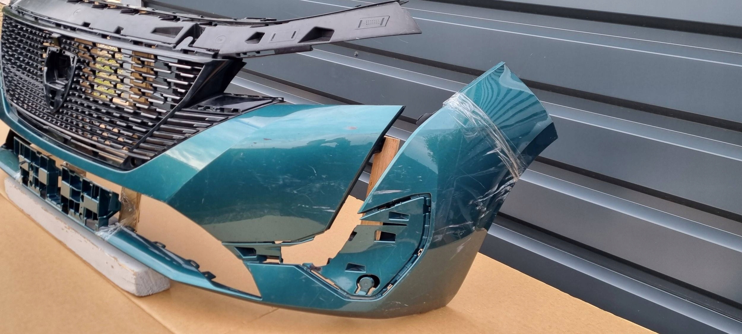 Przedmiotem sprzedaży jest: Zderzak przedni: PEUGEOT 308 III T10, Rocznik: 2021- Zderzak jest używany, Oryginalny, Stan dobry, Pochodzi z demontażu, Posiada boczne zaczepy. Zderzak był pęknięty, został pospawany, widać to na zdjęciach, Grill w zderzaku jest uszkodzony, lewy boczny ślizg zderzaka jest do przyklejenia. Zderzak jest dokładnie taki jak na zdjęciach. Nie znak kodu lakieru, nie sprzedaję w kolor, zderzak używany, do polakierowania, proszę o tym pamiętać, Numer magazynowy zderzaka: E018.