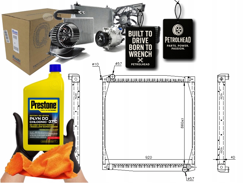 - Wymiary radiatora: 860 X 964 X 40 mm