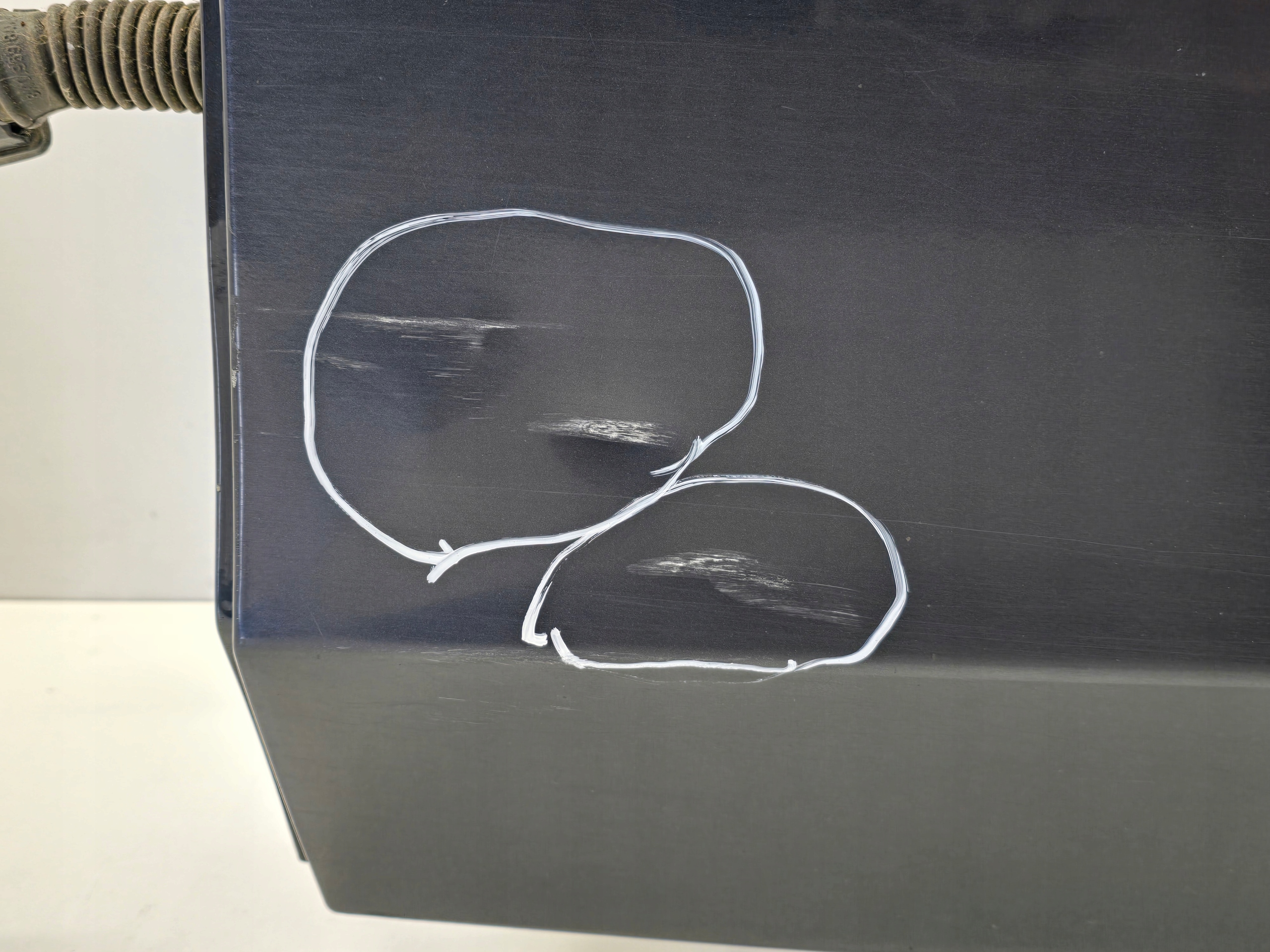 -USZKODZENIA ELEMENTU ZAZNACZONE SĄ MARKEREM( MOGĄ TO BYĆ WGNIOTKI LUB ZAŁAMANIA)
