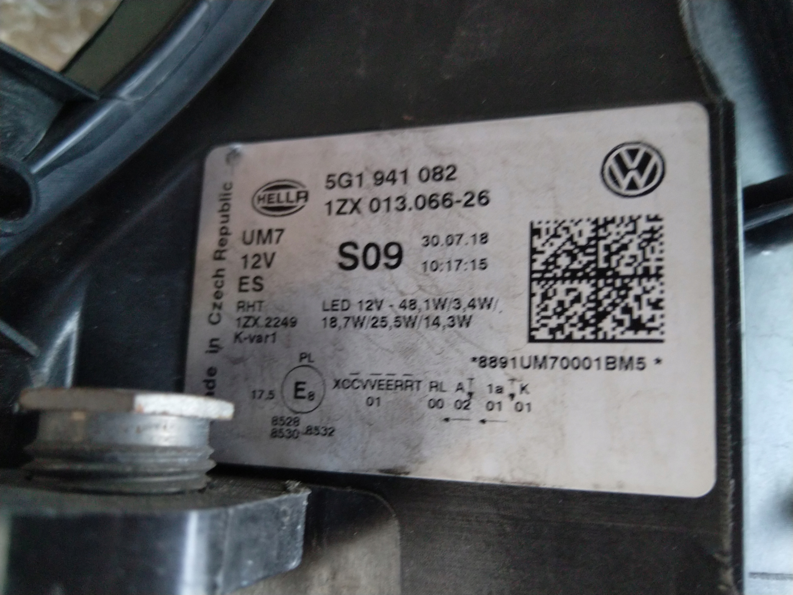 Lampa przednia prawa FULL LED. VW GOLF VII LIFTING 5G1 2016->. Minimalna naprawa bocznego mocowania widoczna na zdjeciach