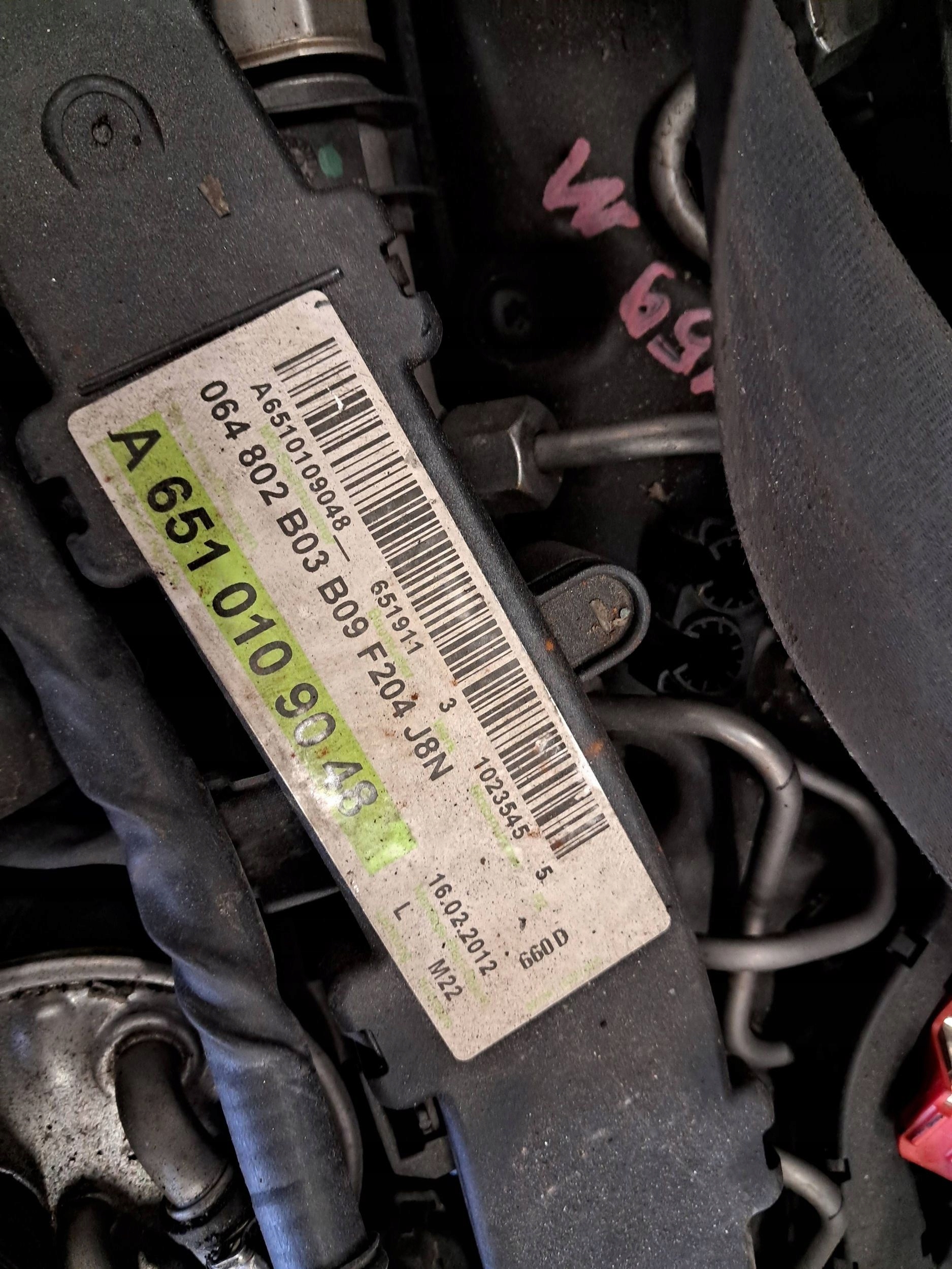 widoczny na zdjęciach silnik kompletny 2.2 CDI kod silnika 651911. Silnik z C klasy W204 silnik pracował ładnie i równo po przebiegu 254 tysiące kilometrów. Cena za całość bez skrzyni biegów