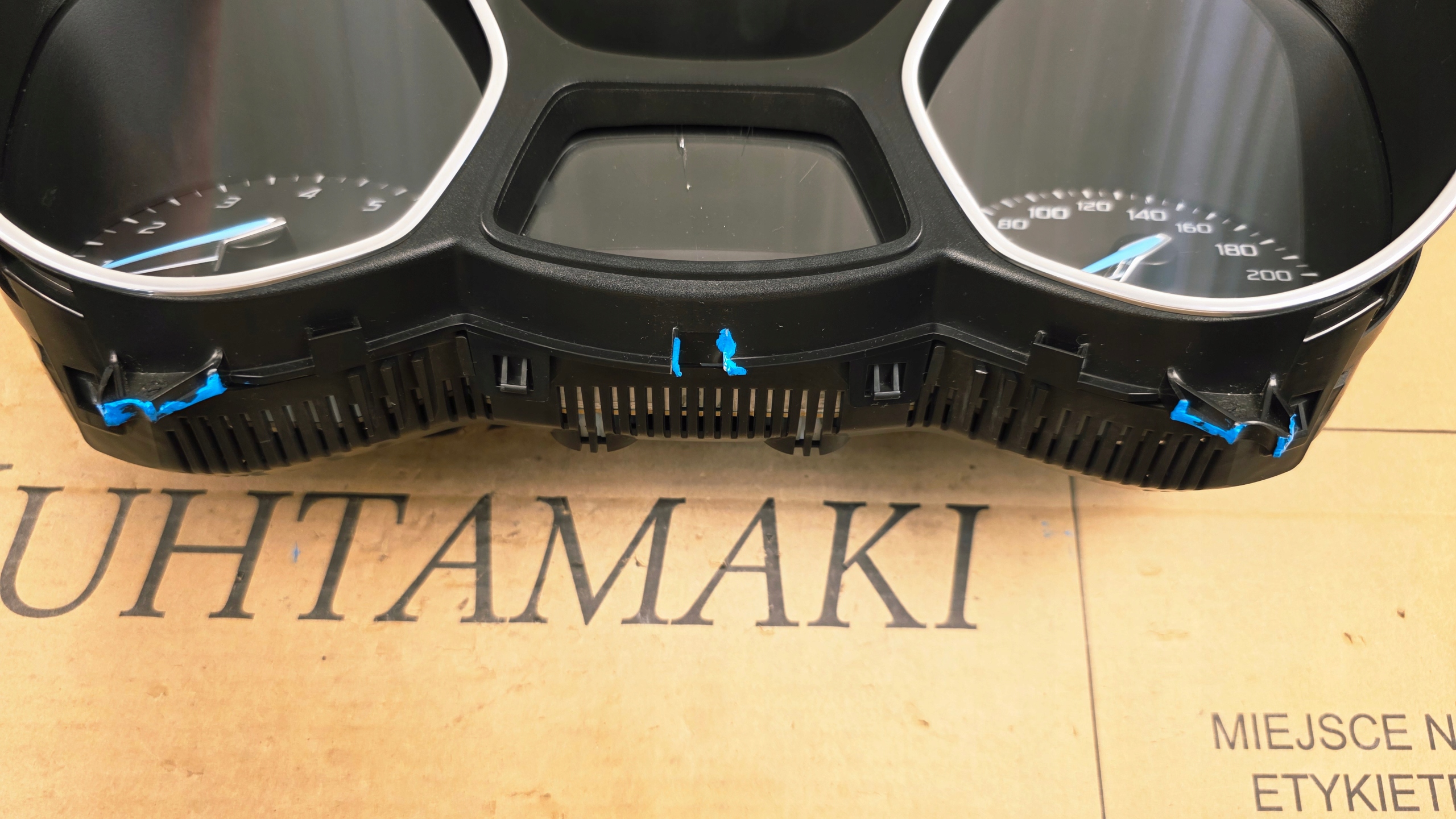 Wyświetlacz ma przebarwienie w górnej części i nie jestem pewny czy jest sprawny choć powinien, gdyż liczniki są sprawdzane przed demontażem.