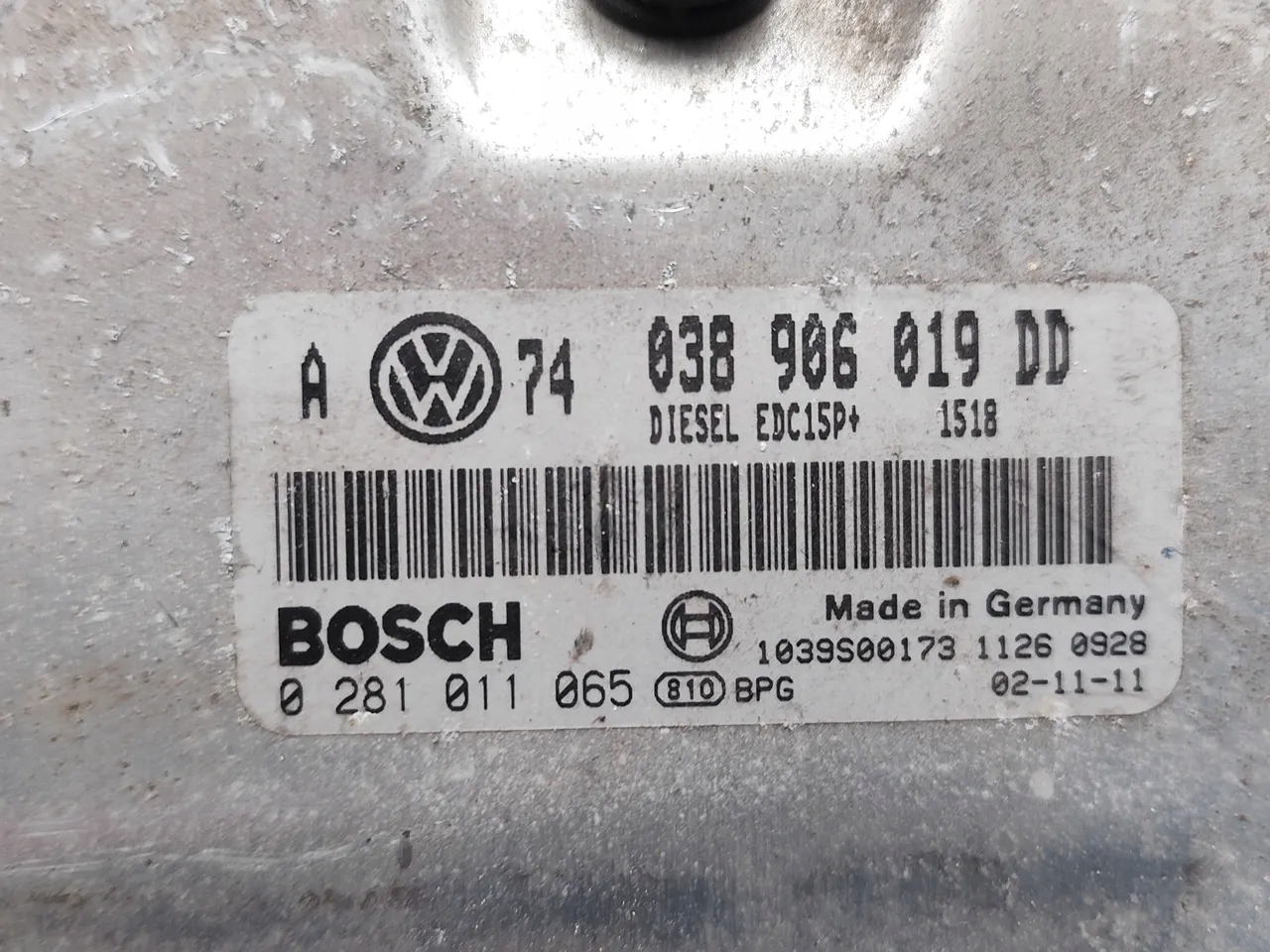 VW Golf Sterownik / Moduł ECU 1.9 TDI Diesel 74kW (101 HP) 038906019DD 0281011065 2002 Przód Szary Hatchback (00-05)