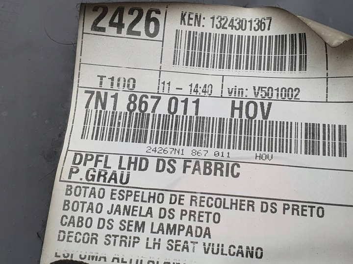 Przedmiot aukcji: BOCZEK DRZWI PRZÓD PRZEDNI LEWY TAPICERKA SEAT ALHAMBRA II SHARAN EU