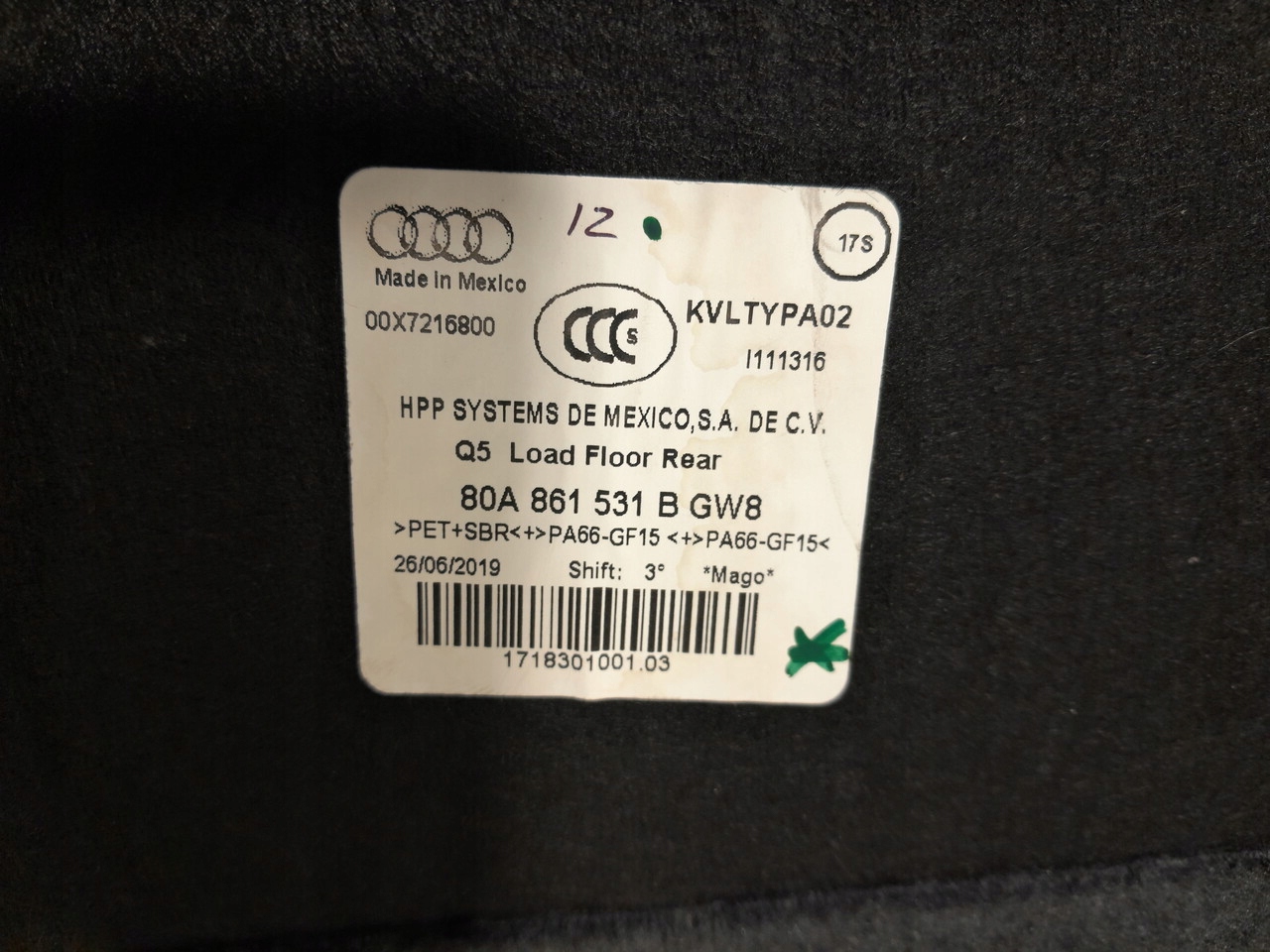 Audi q5 ii 80a плита підлога багажника 80a861531b