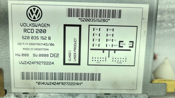 Vw fox polo golf 5 радіо заводські rcd200 5z0035152b з код
