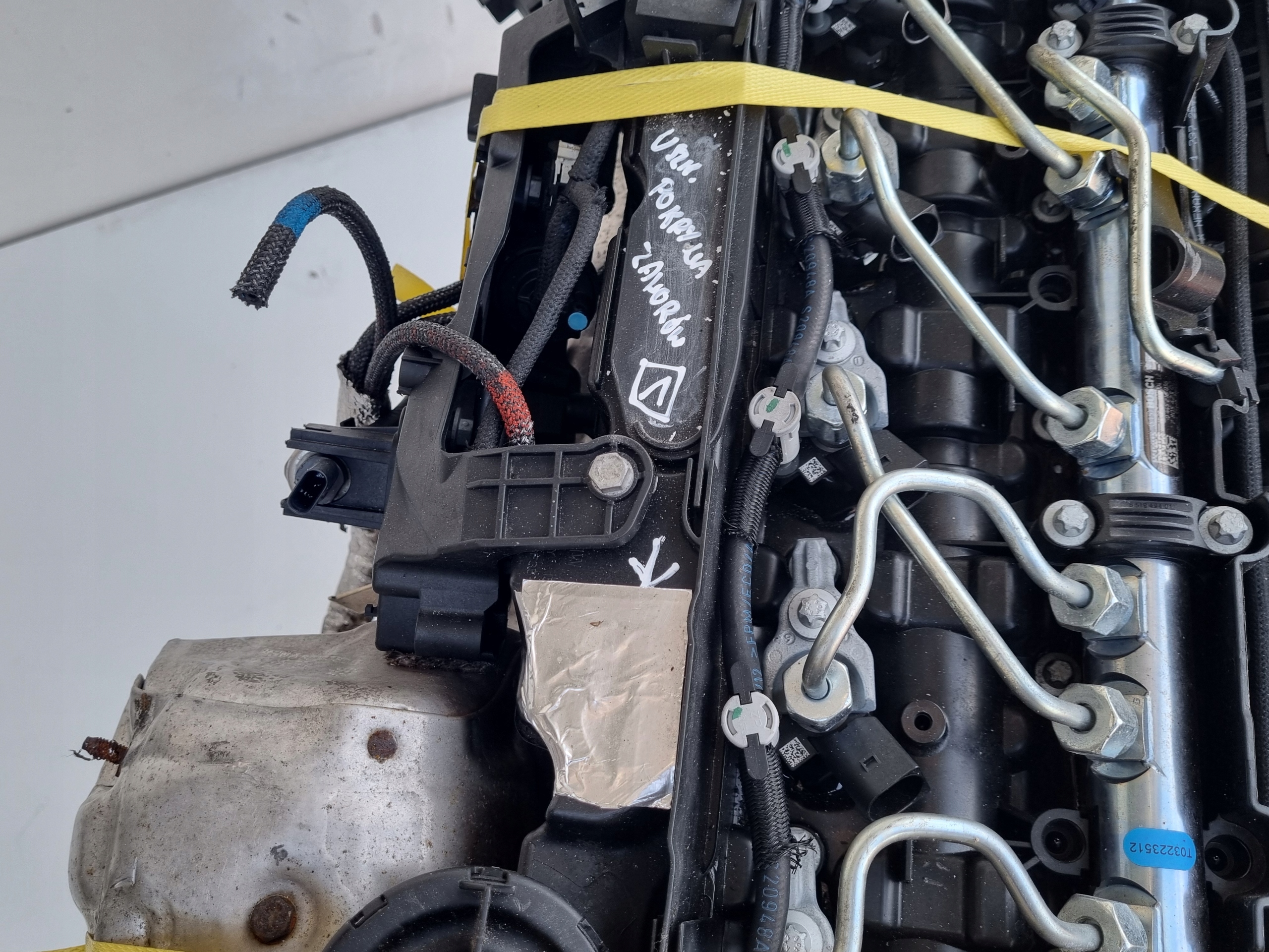 Silnik sprzedajemy w komplecie z pełnym osprzętem widocznym na zdjęciach takim jak układ paliwowy czyli komplet wtryskiwaczy, pompa paliwa, listwa wtryskowa z czujnikami, przewody paliwowe, kolektor ssący, kolektor wydechowy z dwiema turbosprężarkami itp - RESZTA GRATIS tych wszystkich drobnych części tj podstawa alternatora, koło pasowe wału, obudowa filtra oleju, obudowa termostatu, chłodniczka spalin, zawór EGR, przewody, czujniki itp