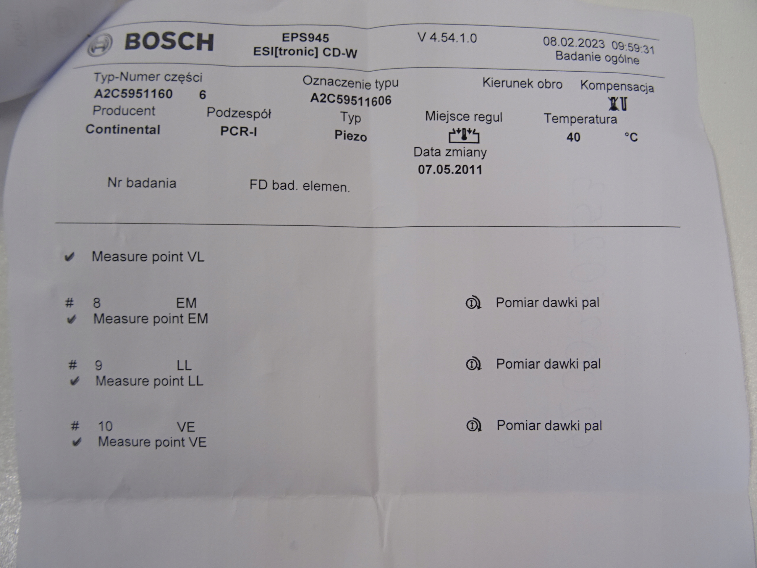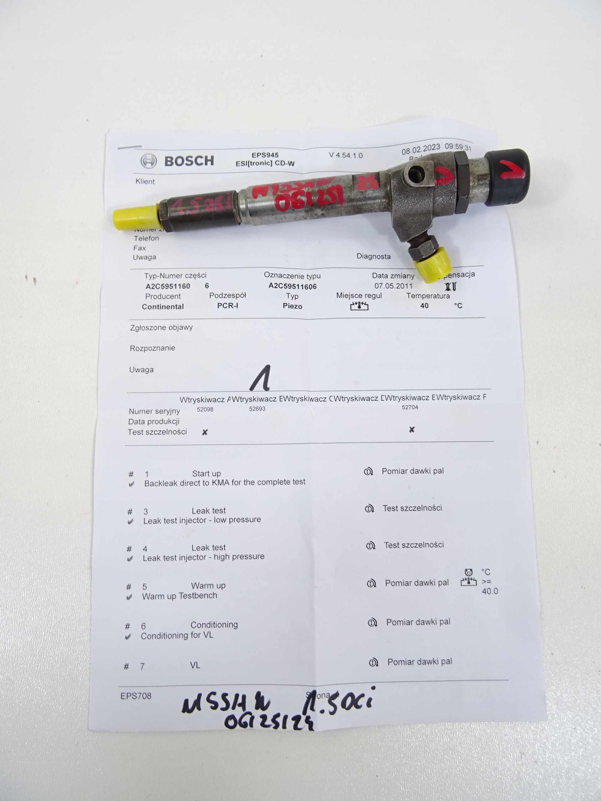 WTRYSKIWACZ NISSAN RENAULT 1.5 DCI 8200380253 H8200294738 WYDRUK TEST