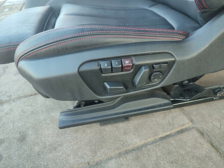 Fotele kanapa boczki tapicerki KOMPLET.FOTELE skórzane obszyte czerwoną nicią . Fotele przednie elektrycznie sterowane z pamięcią i GRZANE Europa.