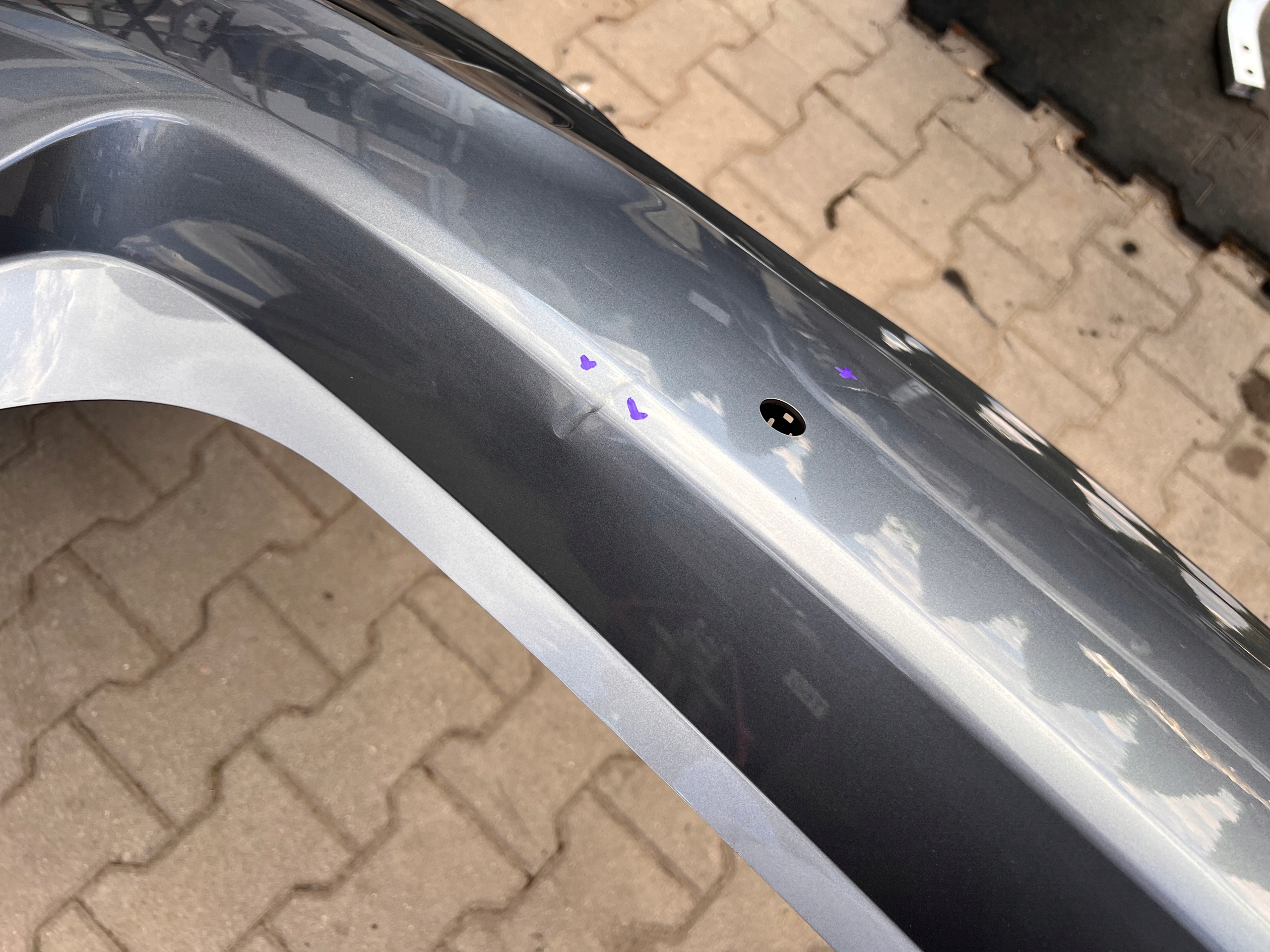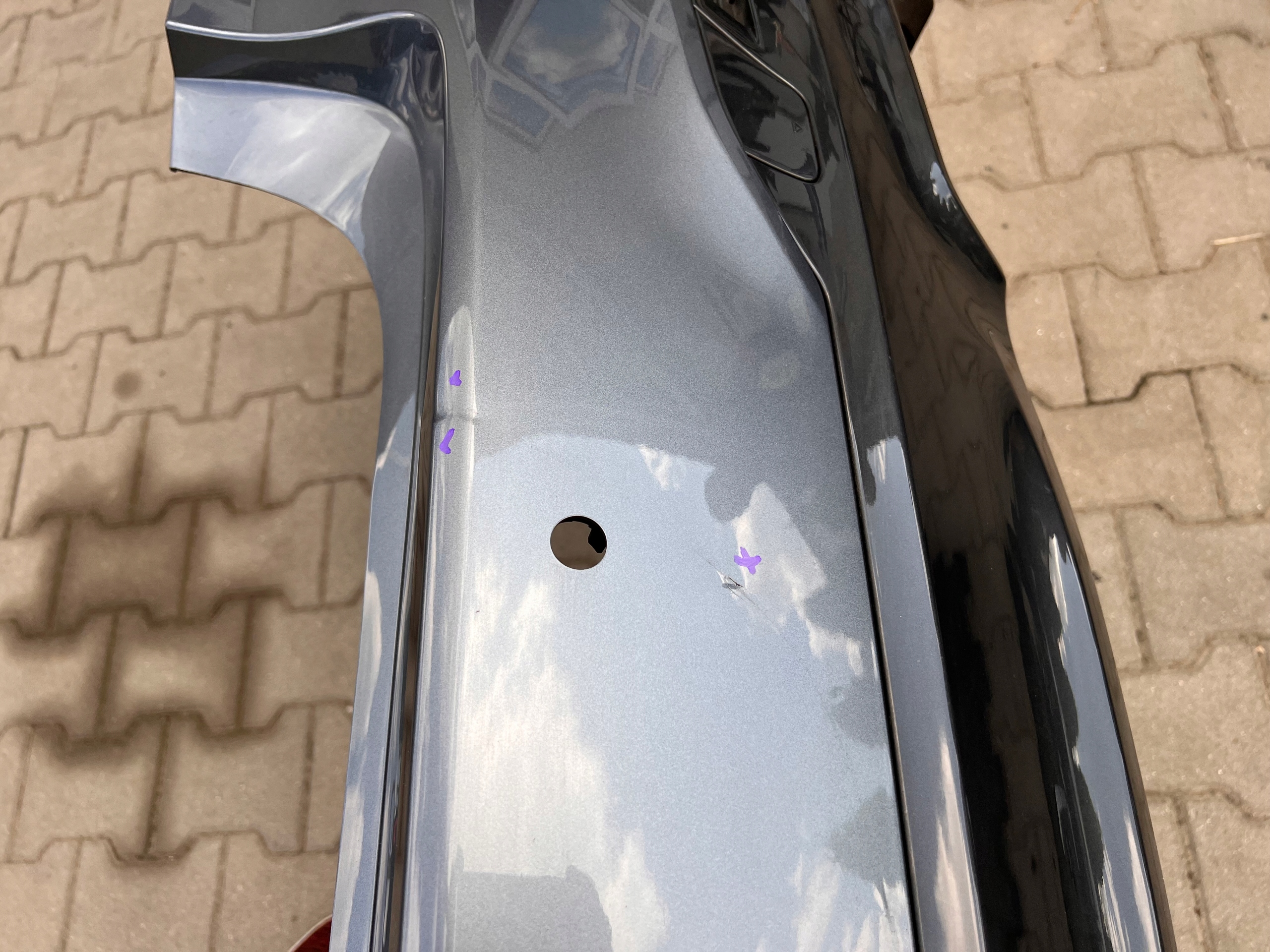 Na zdjęciach pokazujemy ewentualne uszkodzenia samego zderzaka (np. pęknięcia, ułamane mocowania). Wady lakieru mogą, ale nie muszą występować – nie zawsze są widoczne na fotografiach i nie podlegają osobnemu opisywaniu.