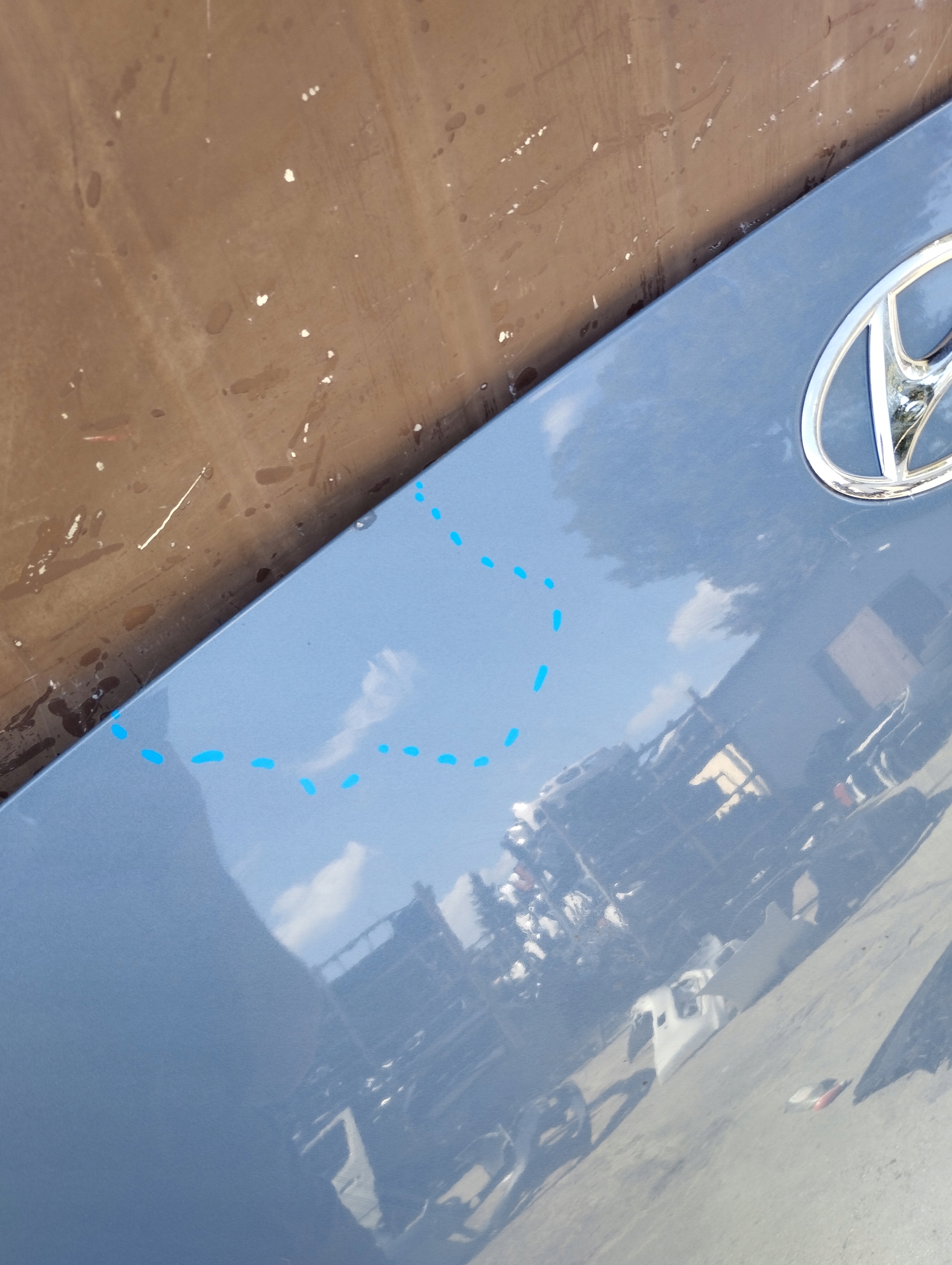 Maska Pokrywa Silnika Hyundai Ioniq 5 V. Maska naprawiana w zaznaczonym miejscu.