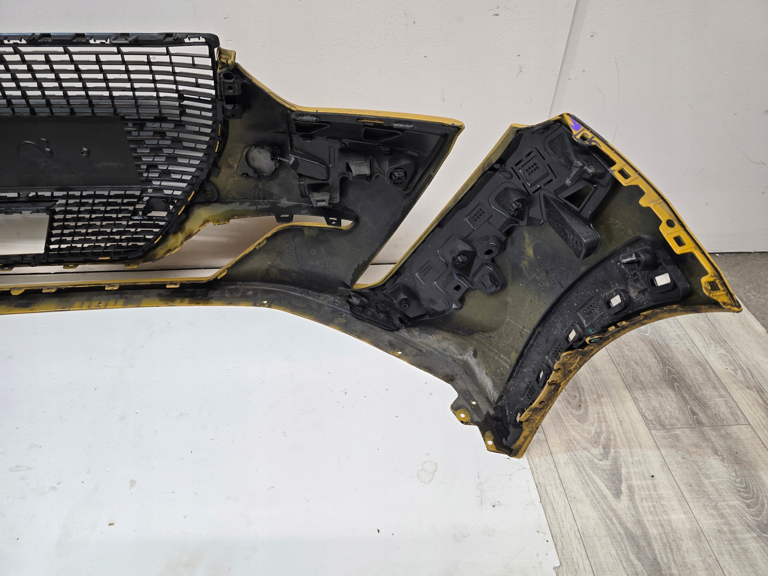 Stan widoczny na zdjęciach. Delikatnie naprawione 2 mocowania (zdjęcie nr 9 i 10). Uszkodzenie grila zaznaczone flamastrem na zdjęciu nr 14, którego po zamontowaniu nie będzie widać.